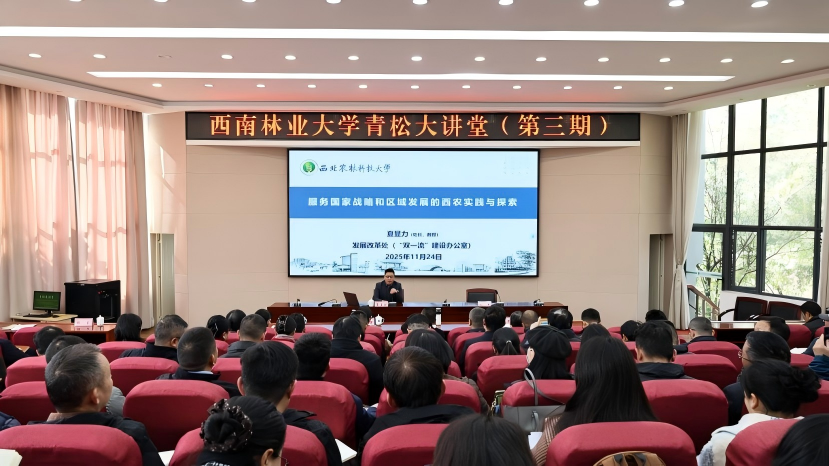 11月24日下午,学校举行“青松大讲堂”第三期专题讲座。本次讲座邀请西北农林科技大学发展改革处处长、“双一流”建设办公室常务副主任夏显力教授作题为《服务国家战略和区域发展的西农实践与探索》的专题报告。讲座由校党委副书记魏宏主持,在昆校领导、全体中层干部参会。夏显力全面系统分析“十五五”时期高等教育发展面临的新形势与新任务,探讨高校如何服务国家战略需求,积极发挥在推动科技创新与产业创新深度融合中的战略支点作用;...