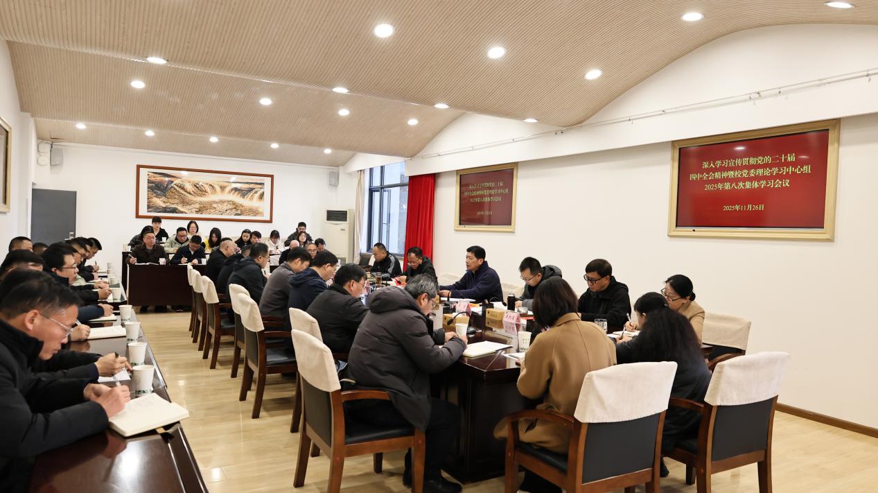 11月26日,学校召开深入学习宣传贯彻党的二十届四中全会精神暨校党委理论学习中心组2025年第八次集体学习会议,校党委书记李永勤作专题辅导。校党委班子成员、各院级党组织书记,党群部门主要负责人,马克思主义学院处级领导班子成员,党政办、材料与化学工程学院和园林园艺学院党员师生代表参加会议。李永勤以《继往开来 砥砺前行——深入学习贯彻党的二十届四中全会精神》为题,从前进的方向、目标任务、时代环境三个维度阐释全会的重大意义,...