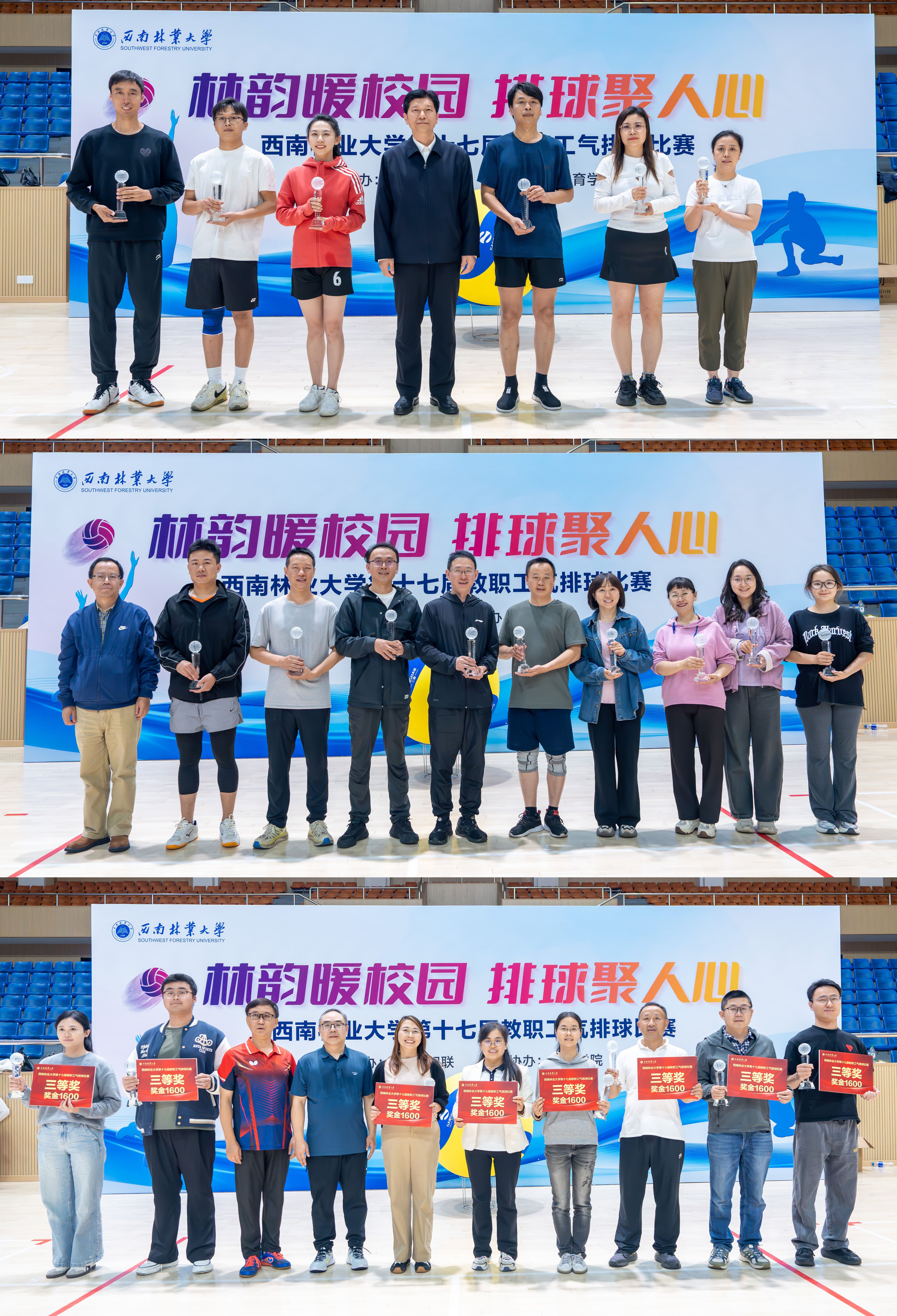 10月20日,西南林业大学第十七届教职工气排球比赛在体育馆内圆满落幕。校党委书记李永勤,校党委副书记、工会主席魏宏、校纪委书记武红星、副校长杨思林出席颁奖仪式。