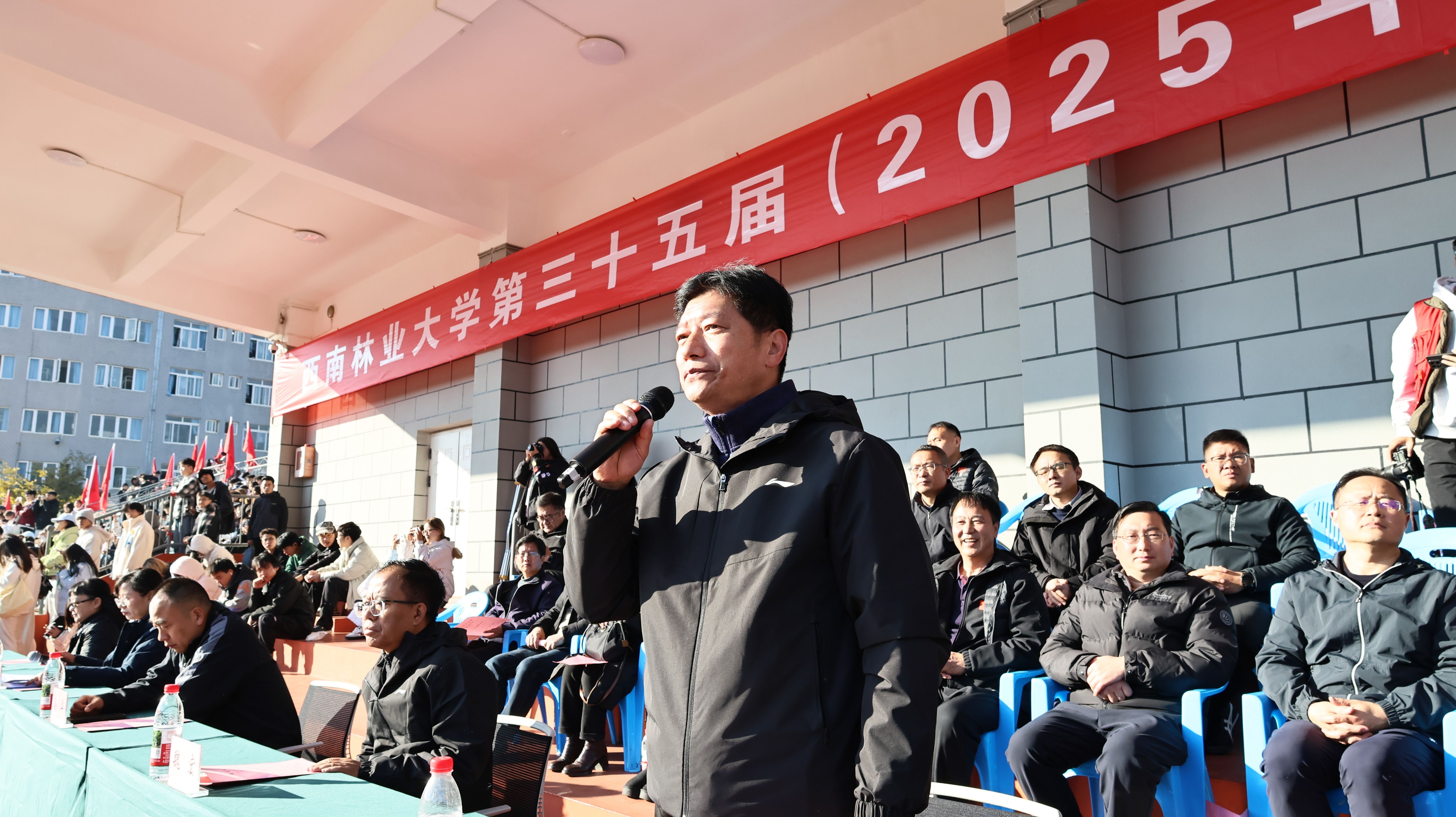 11月26日,西南林业大学第三十五届大学生运动会暨第一届体育艺术文化节在北区足球场开幕。在昆校领导,各院级党组织师生代表及全体运动员参加开幕式。镇康县教育体育局负责同志和部分非遗传承人应邀参加开幕式。开幕式由副校长狄光智主持。