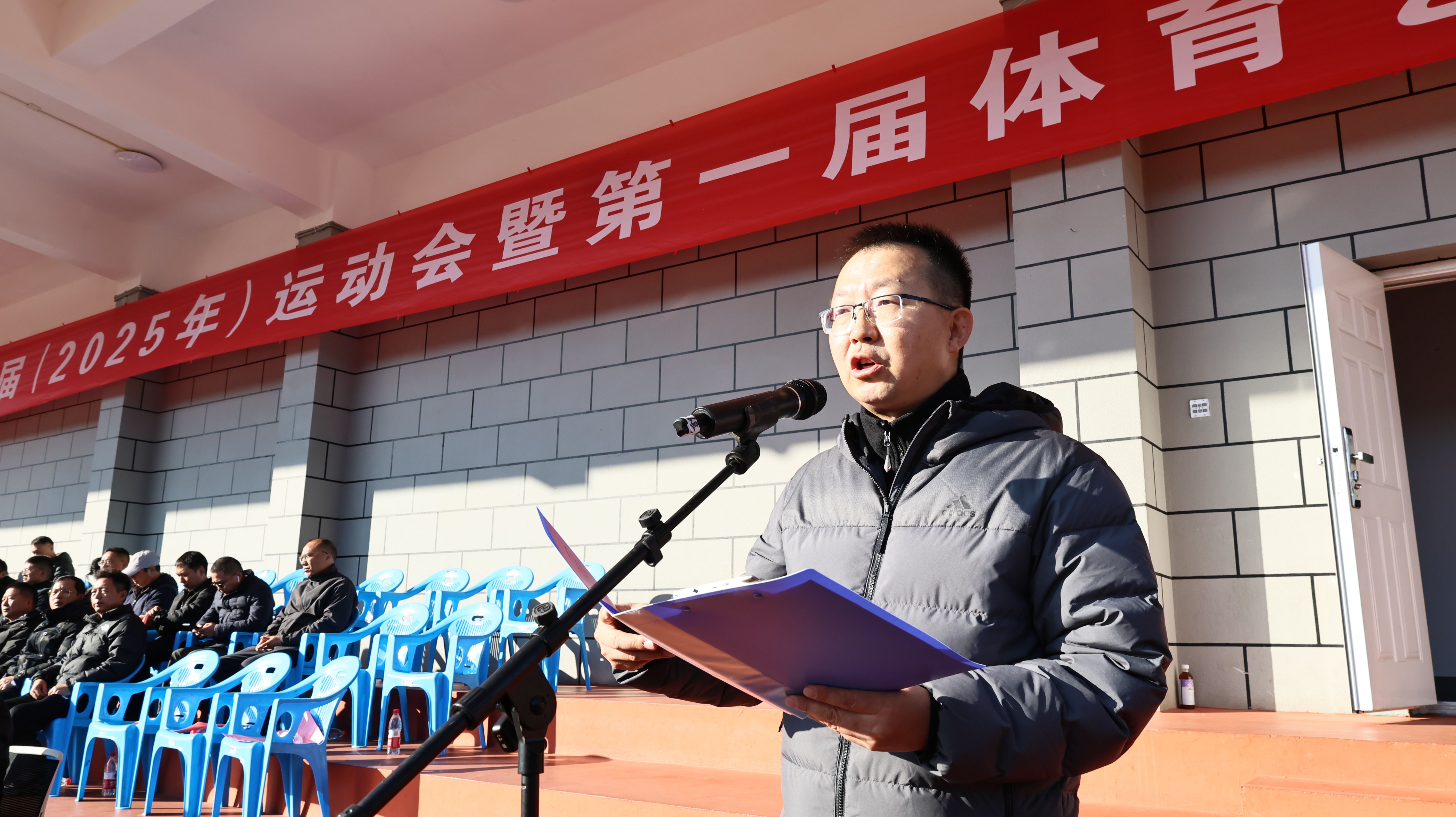 校党委书记李永勤宣布运动会开幕,校长李君为运动会开幕致辞,裁判员代表、运动员代表分别宣誓。