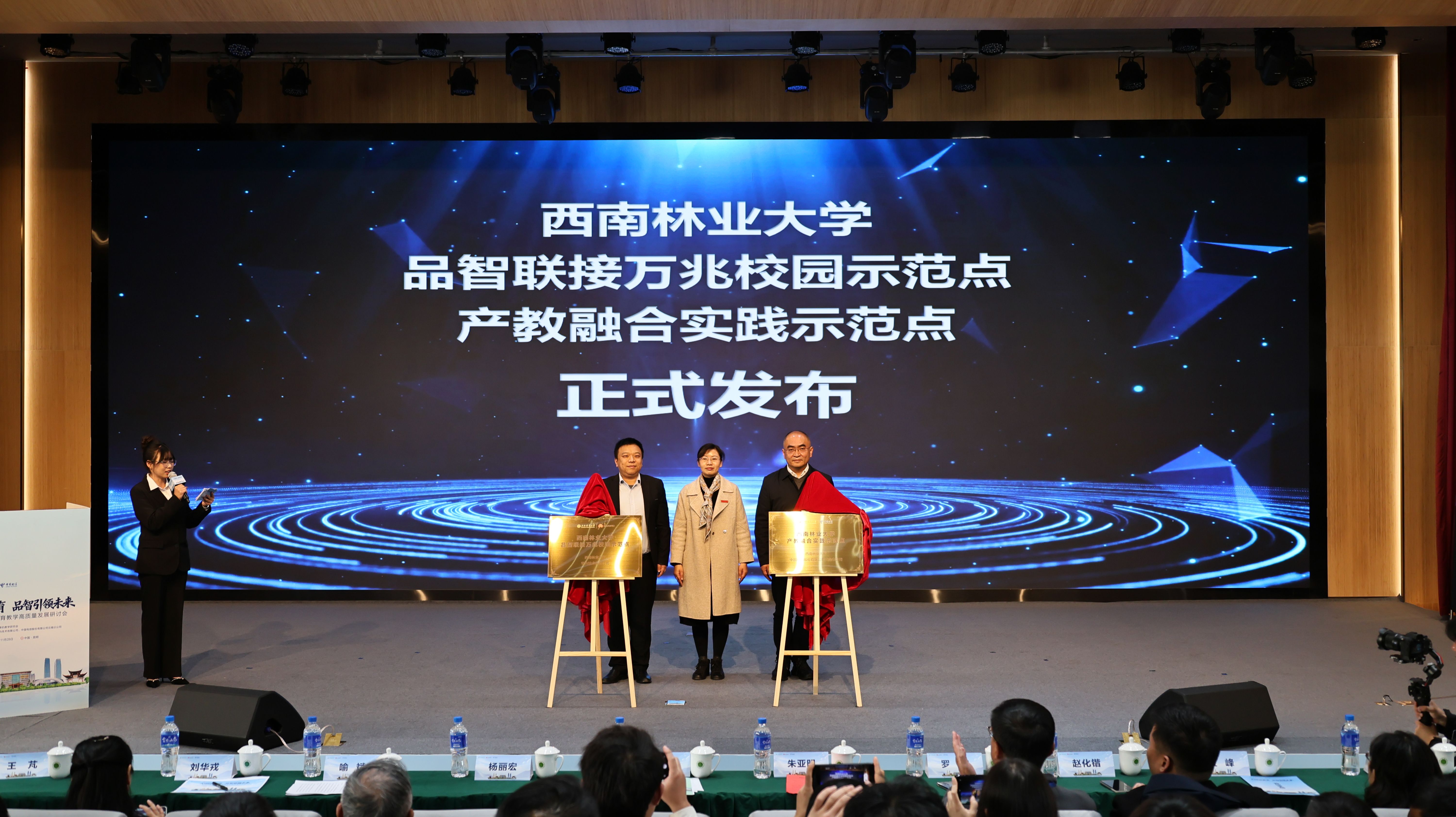 在与会嘉宾的见证下,西南林业大学“品智联接万兆校园示范点”“产教融合实践示范点”正式揭牌,标志着学校和云南电信、华为的合作进入新阶段,为行业提供了可复制、可推广的西林方案。