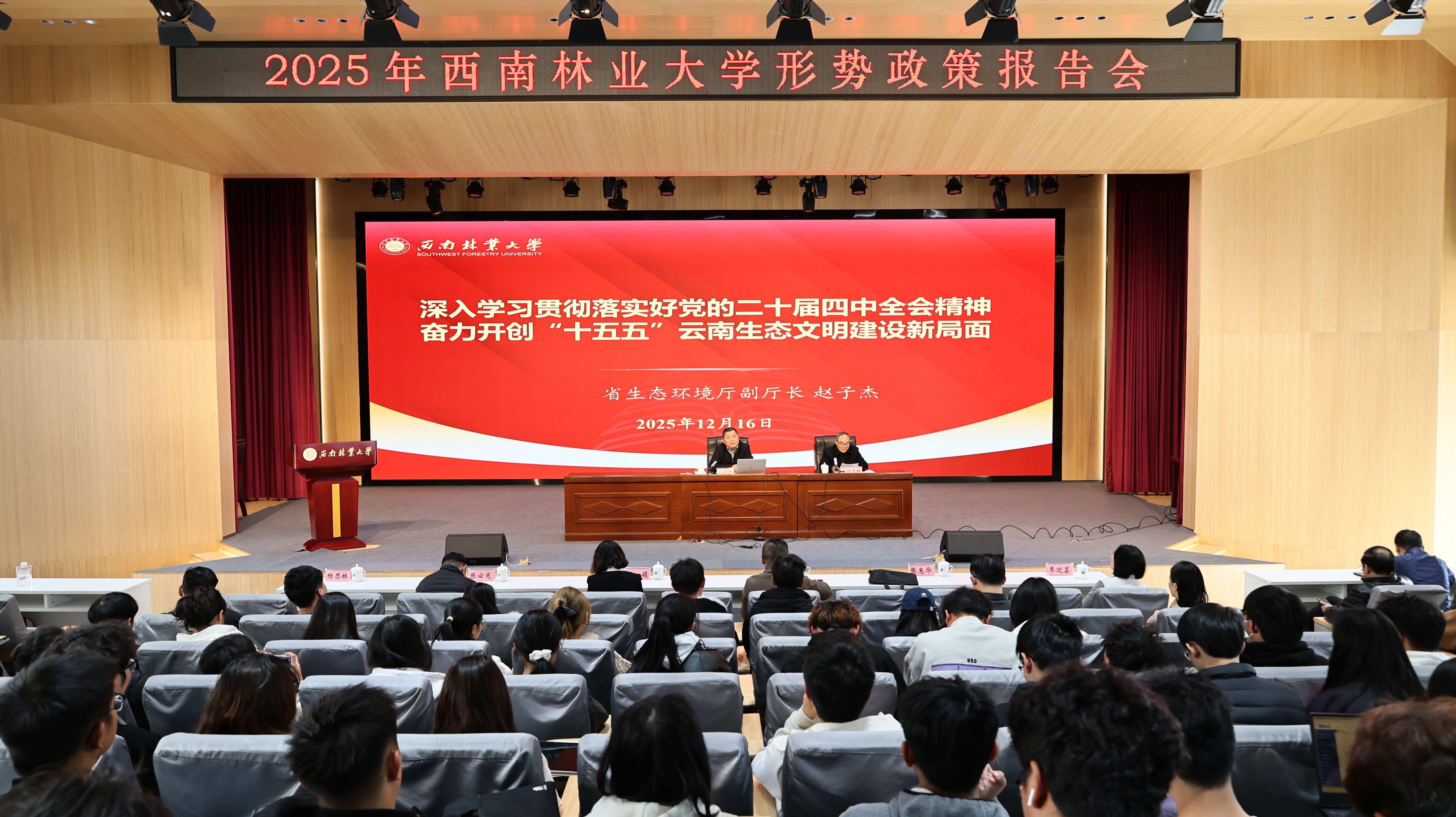 12月16日,我校在北图大报告厅举行学习贯彻党的二十届四中全会精神暨形势政策报告会。本次报告会特邀云南省生态环境厅党组成员、副厅长赵子杰主讲。副校长杨思林主持会议。