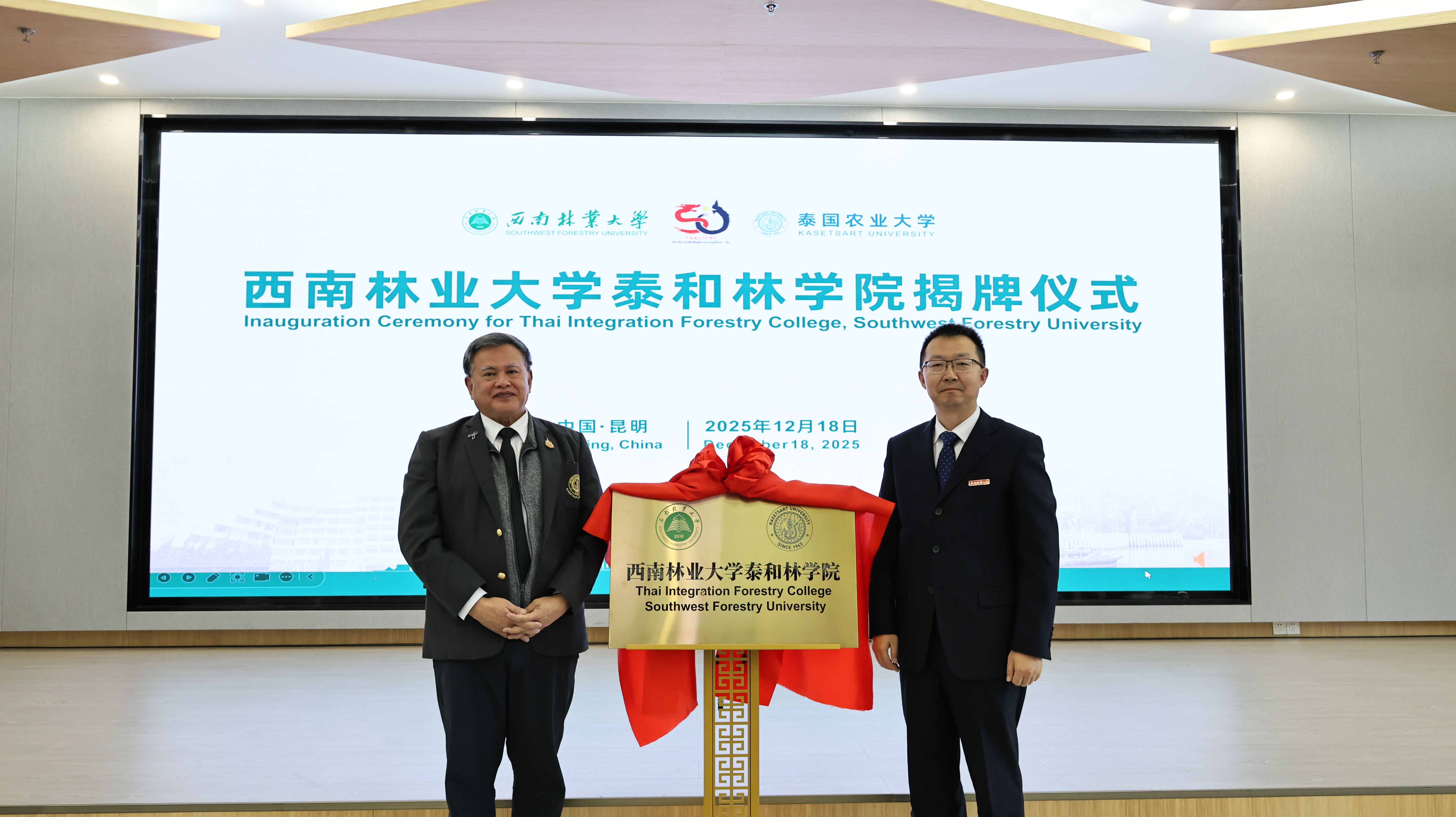 12月18日,西南林业大学泰和林学院揭牌仪式隆重举行。泰国驻昆明总领事馆、省人力资源和社会保障厅、省外国专家局、省林业和草原局、省教育厅、泰国农业大学和西南林业大学相关负责人出席活动,共同见证这一重要时刻。
