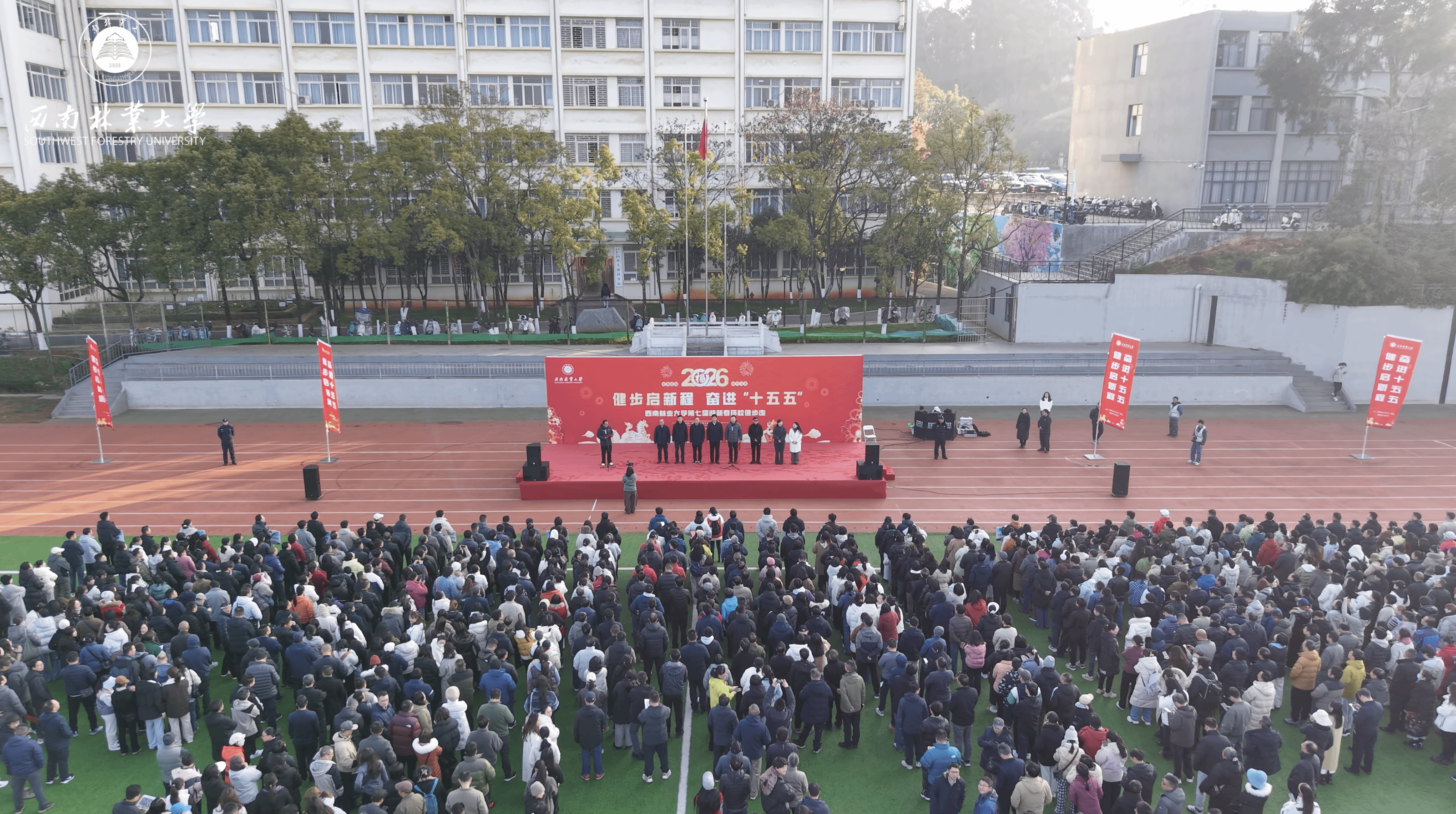 1月9日,西南林业大学举行第七届教职工迎新春环校健步走活动,主题是“健步启新程,奋进‘十五五’”。在昆校领导,各学院、各部门和单位教职工齐聚一堂,以昂扬姿态迈出奋进“十五五”的坚实步伐。校党委副书记、校工会主席魏宏主持活动。