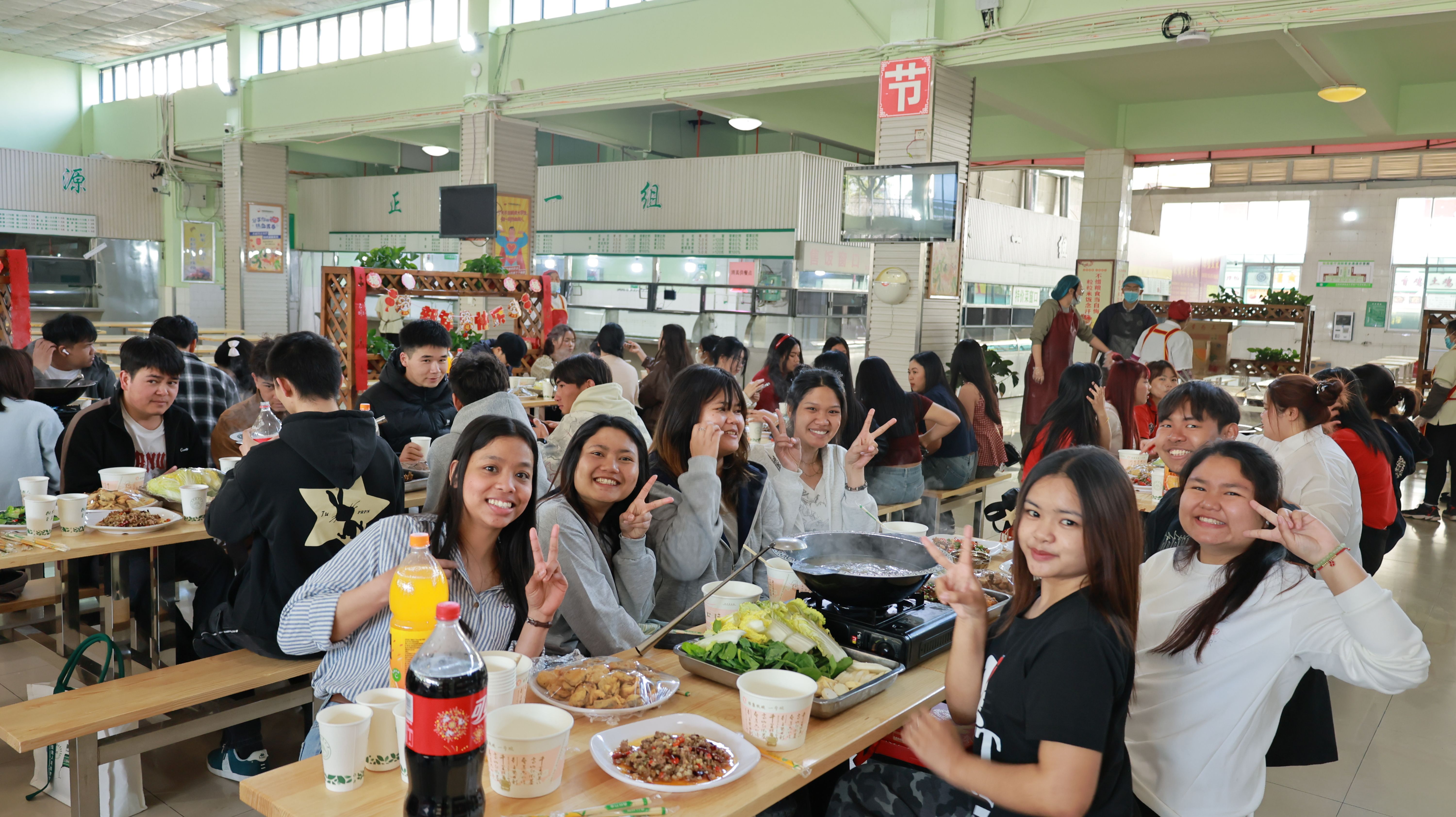 除夕中午,学校为留校学生们安排了丰盛美味的团圆“年饭”,校领导、在校工作的老师和中外同学们在西林大家庭中欢度新春佳节。