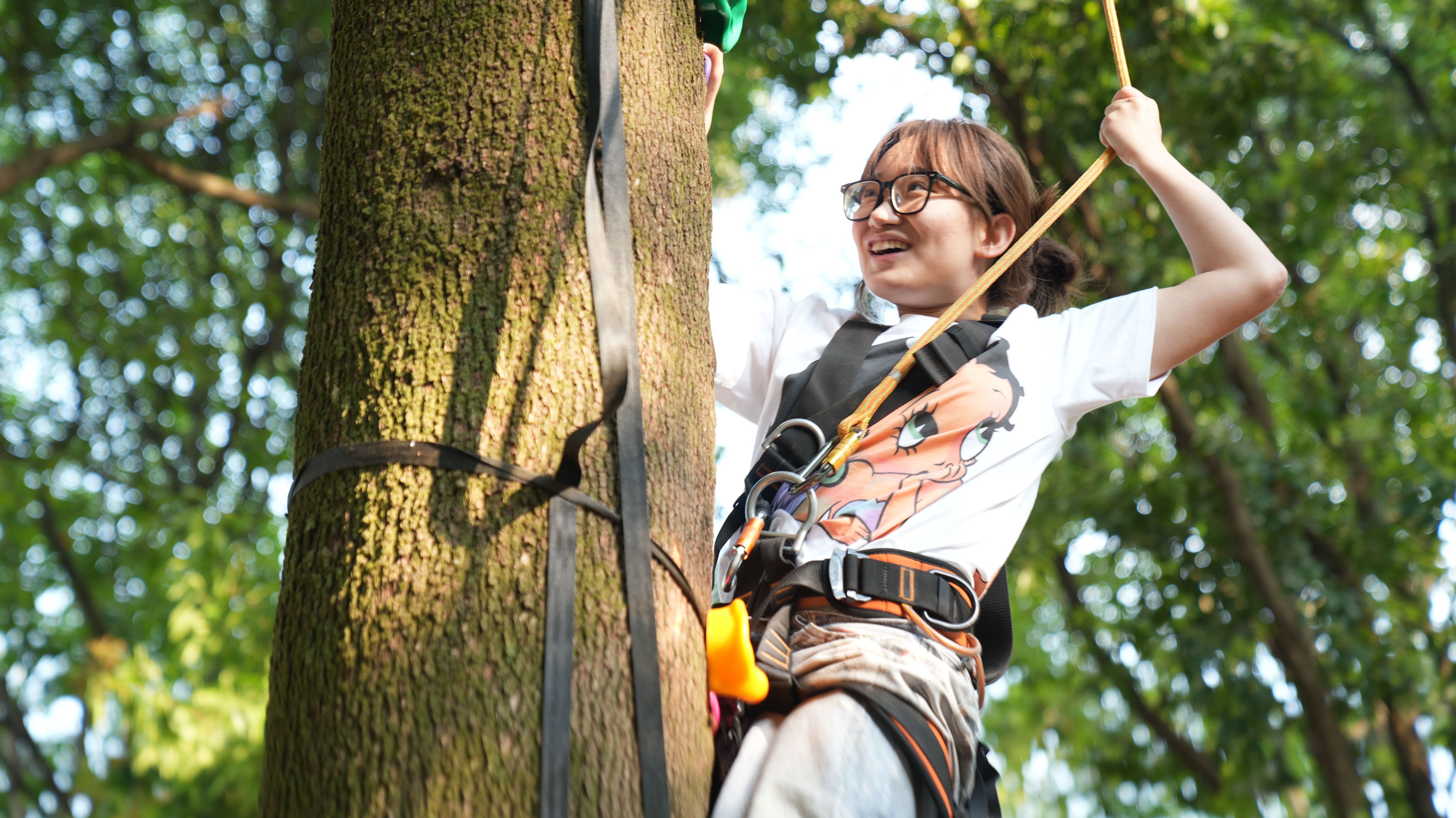 本次挑战赛设置抛绳定靶、基础速攀、树艺锯木、采种模拟等项目,全面考验选手技巧、体能与专业素养。赛场上,选手佩戴专业护具,绳索精准上靶、手脚协调攀升,上演“林间飞跃”,动作规范利落,尽显青春活力。赛事严格遵循安全第一、生态优先原则,配备防护垫、安全区与全程教练守护,实现树木零损伤、比赛零风险。
