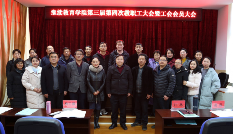 2020年12月31日,继续教育学院第三届第四次教职工大会暨工会会员大会在学院3楼多功能报告厅召开。校党委委员、副校长彭志远,校工会副主席李林谦出席会议。继续教育学院全体教职工23人参加会议。