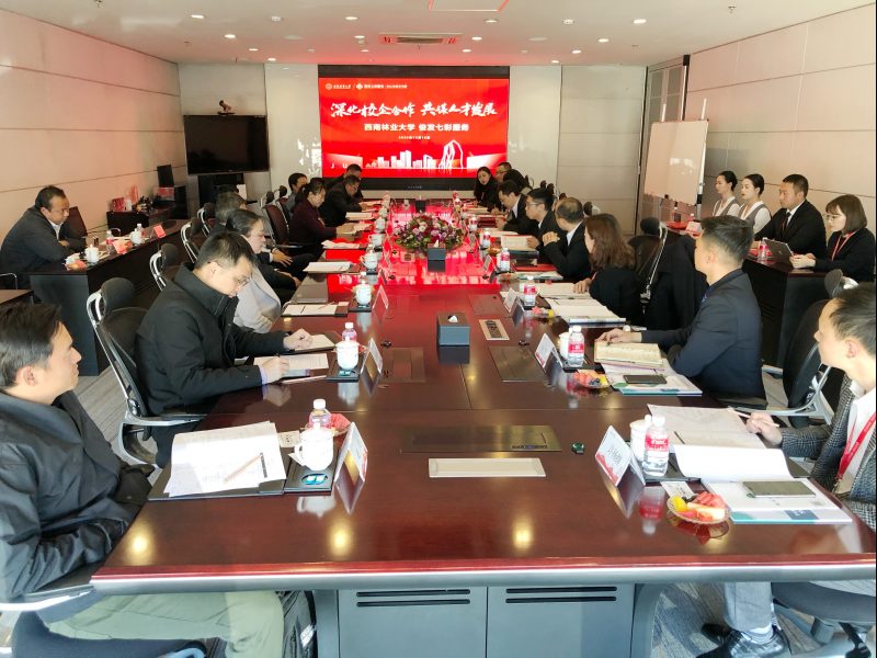 签约仪式上,李镇廷和赵光滨从企业的基本情况、发展历程、规划愿景、人才需求、员工培训、企业招聘等方面进行了详细介绍。他们表示,俊发七彩服务集团是一家有实力、有想法、有规划、有发展的企业。目前正处于快速发展的关键阶段,管理服务、科研攻关、信息化建设、大型设备维护等方面都需要大量优秀人才。希望以本次“校企合作签约与共建就业创业实习实践基地”为契机,与西南林业大学展开全面合作,欢迎更多西林优秀学子加入俊发七彩服务大家庭,共同进步,共赢发展。他们还表达了俊发七彩服务愿与学校合作的强烈愿望。