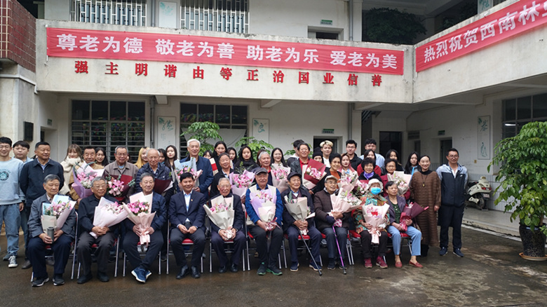 在敬老节座谈会上,校党委副书记刘清江、党委组织部部长郭正春、工会专职副主席李林谦参加座谈会并对老同志进行慰问。刘清江代表学校对老同志致以节日的慰问并在讲话中指出,爱老尊老敬老是中华民族的传统美德,是先辈传承下来的宝贵财富,中华民族源远流长、博大精深的传统文化中,重视人伦道德、讲究家风家教,是民族强大凝聚力和亲和力的体现。老干部是党和国家的宝贵财富,国家和学校都十分重视老干工作,高度关心老同志的政治待遇和生活待遇落实情况,不断满足老同志对美好生活的需求。希望各位老干部老专家继续发挥余热,参与力所能及的一些工作,为学的改革发展建言献策。会后,刘清江带队上门看望慰问了曾出国赴朝作战的范大康并颁发纪念勋章。