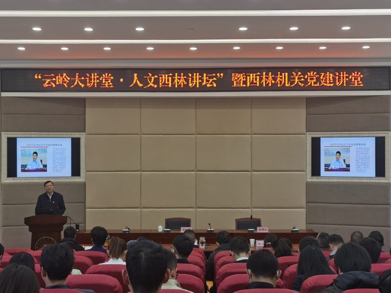 按照省委宣传部、省社科联对云岭大讲堂的统筹安排,10月23日,学校举办2020年“云岭大讲堂•人文西林讲座”暨机关党建讲堂。讲座由校党委副书记魏宏主持。中共云南省委党史研究室主任苏红军为大家作“弘扬红军长征精神 走好新时代的长征路”的报告。校纪委书记杨中梁、省社科联科普部主任杨远梅、省社科联科普部副主任孙峥嵘,校直机关全体党员和林学院师生党员参加讲座。