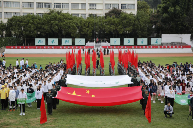 郭辉军在开幕式上致辞。他代表学校向刻苦训练、积极参赛的全体运动员致以亲切的问候,向精心筹备运动会的教练员、裁判员和工作人员表示衷心的感谢。郭辉军指出,受疫情影响,健康已经成为年度热词,越来越成为人们关心的话题。在这个时候,举办全校性的大型运动会,就是要倡导健康的生活理念,让青春和活力成为校园最靓丽的风景。一直以来,学校高度重视体育工作,把发展体育工作摆在重要日程,精心谋划,狠抓落实,加大投入,改善条件,努力提升学校体育工作和师生体育运动水平。2019年,学校深化体育教学改革,建立和完善课外体育锻炼机制,积极开展体育对外交流合作,规范和完善六大赛事的组织和管理,加强体育社团的指导和监督,学生获国家级体育竞赛特等奖6项、一等奖2项、二等奖1项,获省级体育竞赛金牌25枚、银牌13枚、铜牌15枚。郭辉军强调,身体是事业的本钱,健康是成功的保障。健康是责任,健身是任务。希望全校师生树立“健康第一”的理念,走出办公室、走出宿舍、走下网络、走向运动场,积极投入到体育运动中去,把每天从事适当的健身运动当作必须完成的任务,在运动中领略体育的魅力、感受体育的激情、体会运动的快乐,在锻炼中收获健康,快乐学习、快乐工作、幸福生活,让生命因运动而更加精彩。