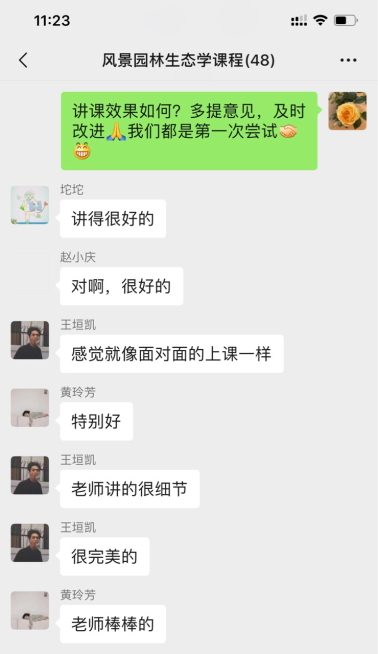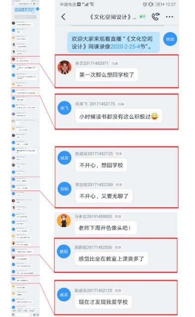 同学们对在线学习充满了期待。“以前可能坐在后排因看不清、听不清而放弃学习,现在感觉就坐在第一排而被老师关注。非常喜欢这种教学模式。” “一边听着讲授,一边忙着做笔记。” 线上课堂气氛活跃,热闹生动,同学们与老师交流互动,积极回答问题。课后,回看直播视频,复习讲义PPT、课程资料,按时认真完成作业。线上教学充分调动了同学们的学习主动性和积极性,可以在疫情期间居家安心学习,得到同学们的充分肯定。