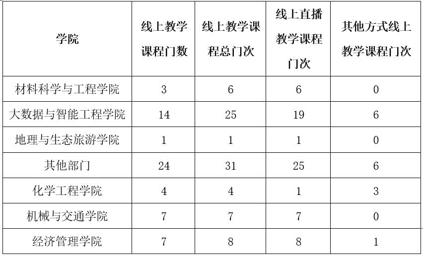 本学期全校开设课程1291门、3209门次,学校统筹安排,学院认真落实,教师灵活实施,按照多种教学工作预案,完成了网络在线教学的准备工作。全校组织落实了228位教师线上教学,开课课程259门、586门次,占全部课程门数和门次比例分别为20.06%、18.26%。