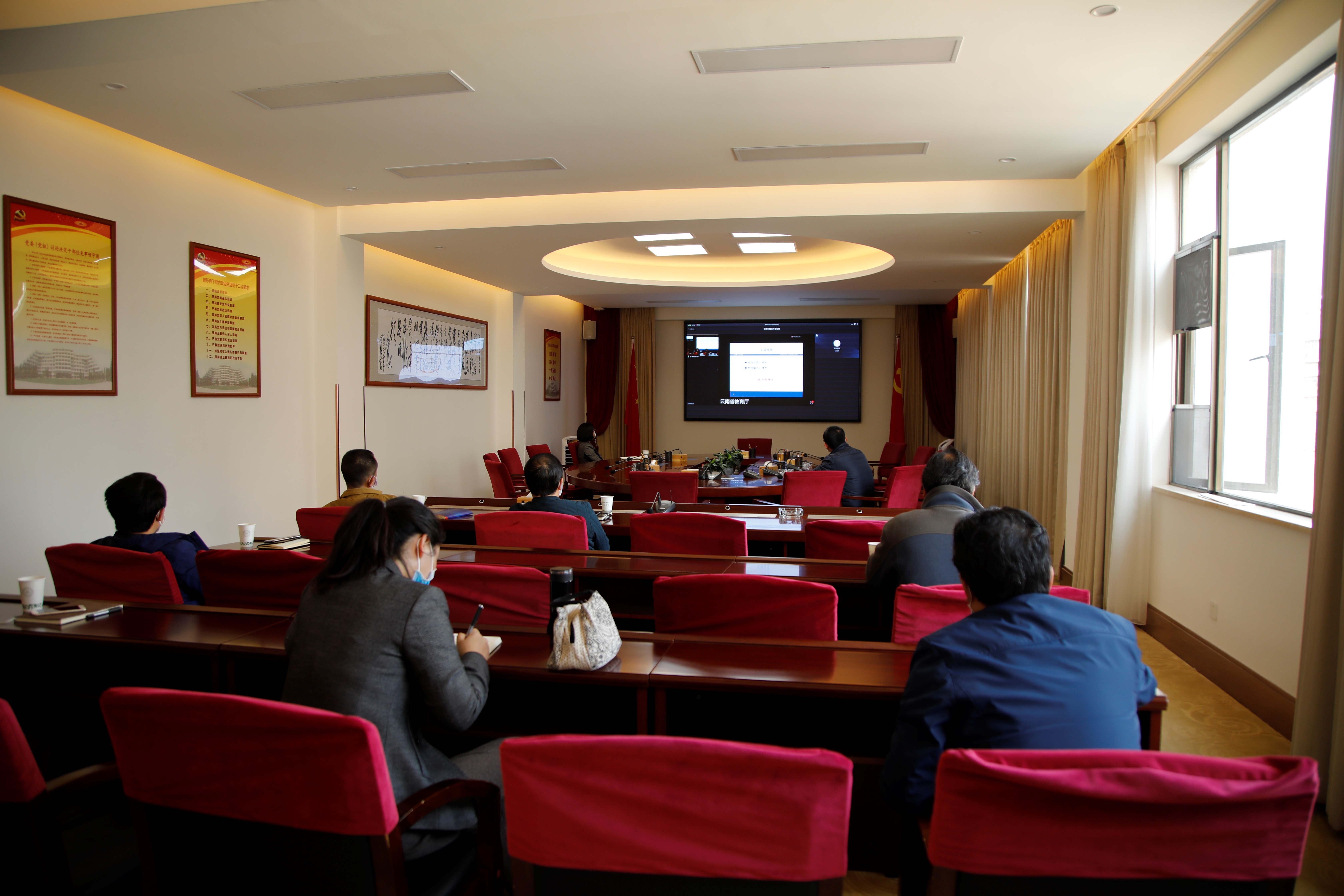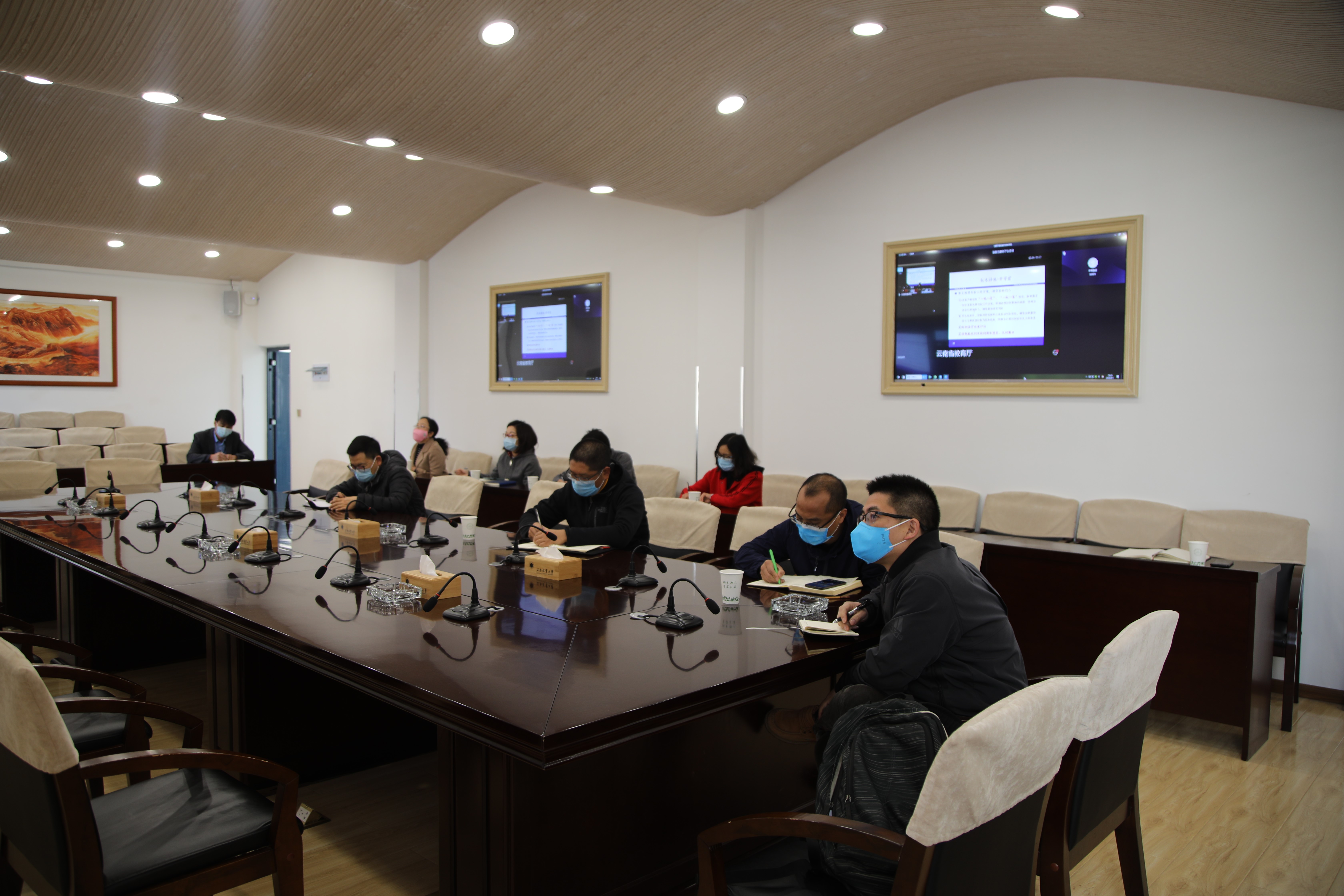 为深入学习贯彻习近平总书记重要讲话和指示精神,贯彻落实党中央、国务院和省委、省政府的决策部署,切实做好全省各级各类学校新冠肺炎疫情防控工作,根据省应对疫情防控工作领导小组指挥部疫情防控组“关于召开学校新冠肺炎疫情防控视频会议的通知”要求,2020年3月11日上午,我校疫情防控领导小组成员及相关部门负责人在行政楼401、402会议室通过云视讯收听收看。