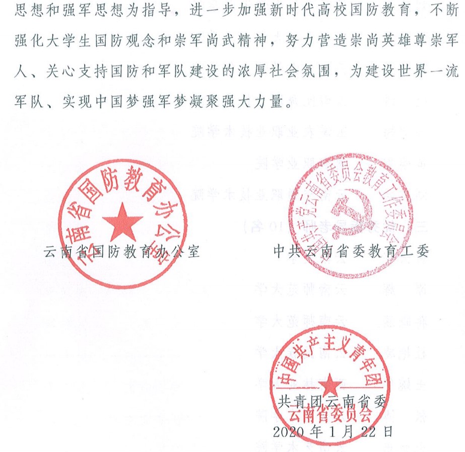 根据中共中央办公厅、国务院办公厅关于开展庆祝中华人民共和国成立70周年群众性主题宣传教育活动的通知精神,2019年6月至12月,云南省国防教育办公室、省委教育工委、共青团云南省委围绕“赞颂辉煌成就、军民同心筑梦”和“时代新人说——我和我的祖国共成长”青春力量主题,联合组织了云南省“时代新人说——我和我的祖国共成长”青春力量主题暨第三届“爱我国防”大学生主题演讲大赛,并推荐选手参加了全国演讲大赛。