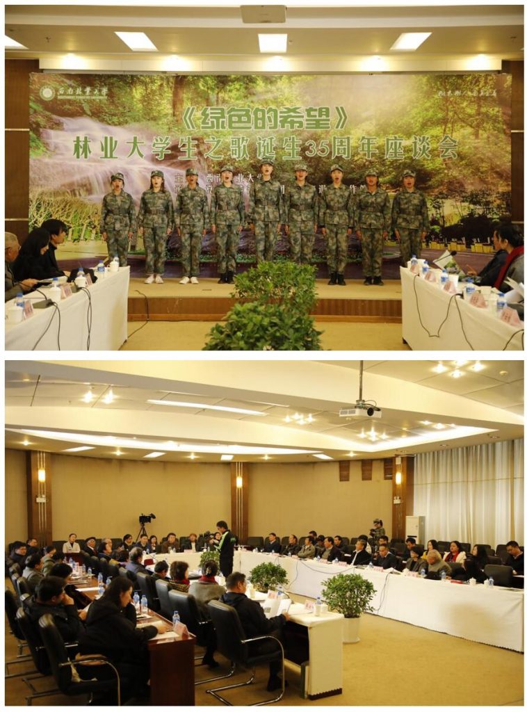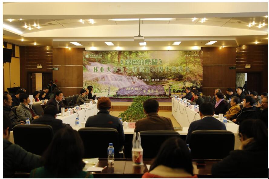1月8日,学校举行“绿色的希望–林业大学生之歌”诞生35周年座谈会。校党委书记张昌山,校长郭辉军,校党委副书记刘沧山,副校长何霞红,校党委宣传部原部长孙韬,西南林业大学校歌曲作者王红兵,著名词作家卢云生,著名女高音歌唱家王郁芝,著名作曲家、云南省人民广播电台文艺部主任唐天尧,云南人民广播电台民族部音乐、文学编辑黄舜瑶以及省歌舞剧院王兰萍、朱瑛、罗萌、王鸽、吴云辉等多名音乐家和歌唱家出席座谈会。学校党委各部门、社会科学管理办公室、基层党委负责人,历届校园歌手赛冠军代表、音乐系师生代表及相关学生组织学生代表参加了座谈会。座谈会由刘沧山主持。