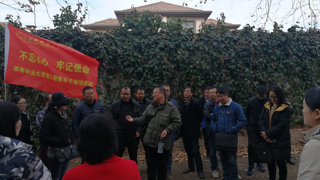 全体学员来到学校旧址楸木园,培训班特别邀请我校退休教师周雪松为大家作讲解。周老师从教学、学习、生活等多个方面,为大家生动的讲述了学校在楸木园办学时的那段艰苦岁月,当年学校师生们在楸木园努力奋斗、不辍耕耘的图景一一浮现,让学员们深刻感受到了老一辈西林人不畏艰难,坚定理想,勇于克服困难的“楸木园精神”。