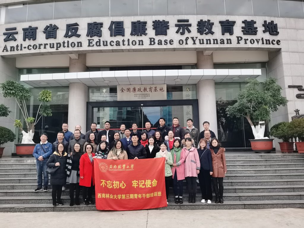 1月3日,我校第三期青年干部培训班组织全体学员到云南省反腐倡廉警示教育基地和学校安宁旧址楸木园开展实践学习。校党委组织部部长刘清江、第三期青干班班主任苏小冰全程参与了学习活动。
