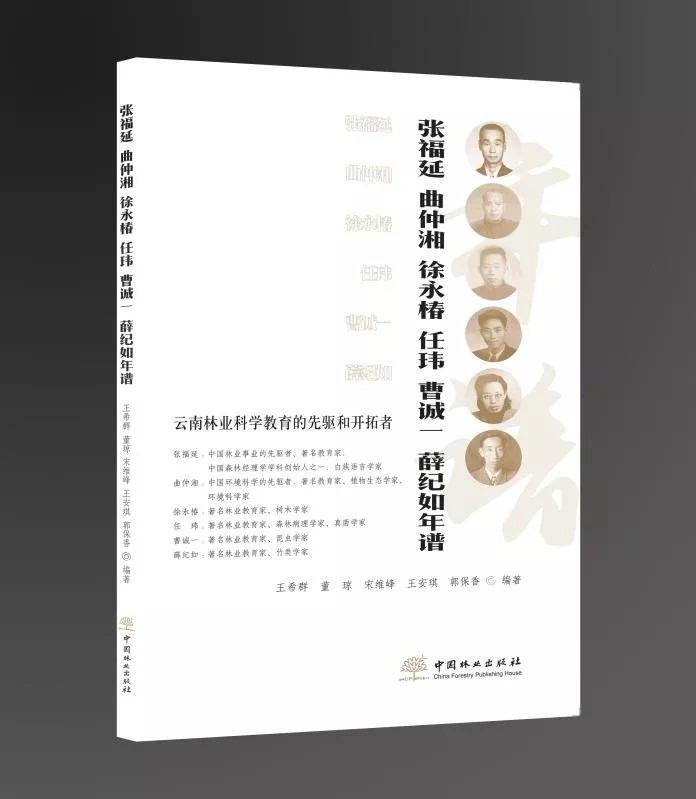 2019年10月,由中国林业科学研究院正高级高级工程师王希群,我校副教授董琼、教授宋维峰,旅美学者王安琪,国家林业和草原局林产工业规划设计院正高级高级工程师郭保香共同编著的《张福延 曲仲湘 徐永椿 任玮 曹诚一 薛纪如年谱》一书由中国林业出版社出版。该书系统地展示了六位云南林业科学教育先驱奋斗的一生。