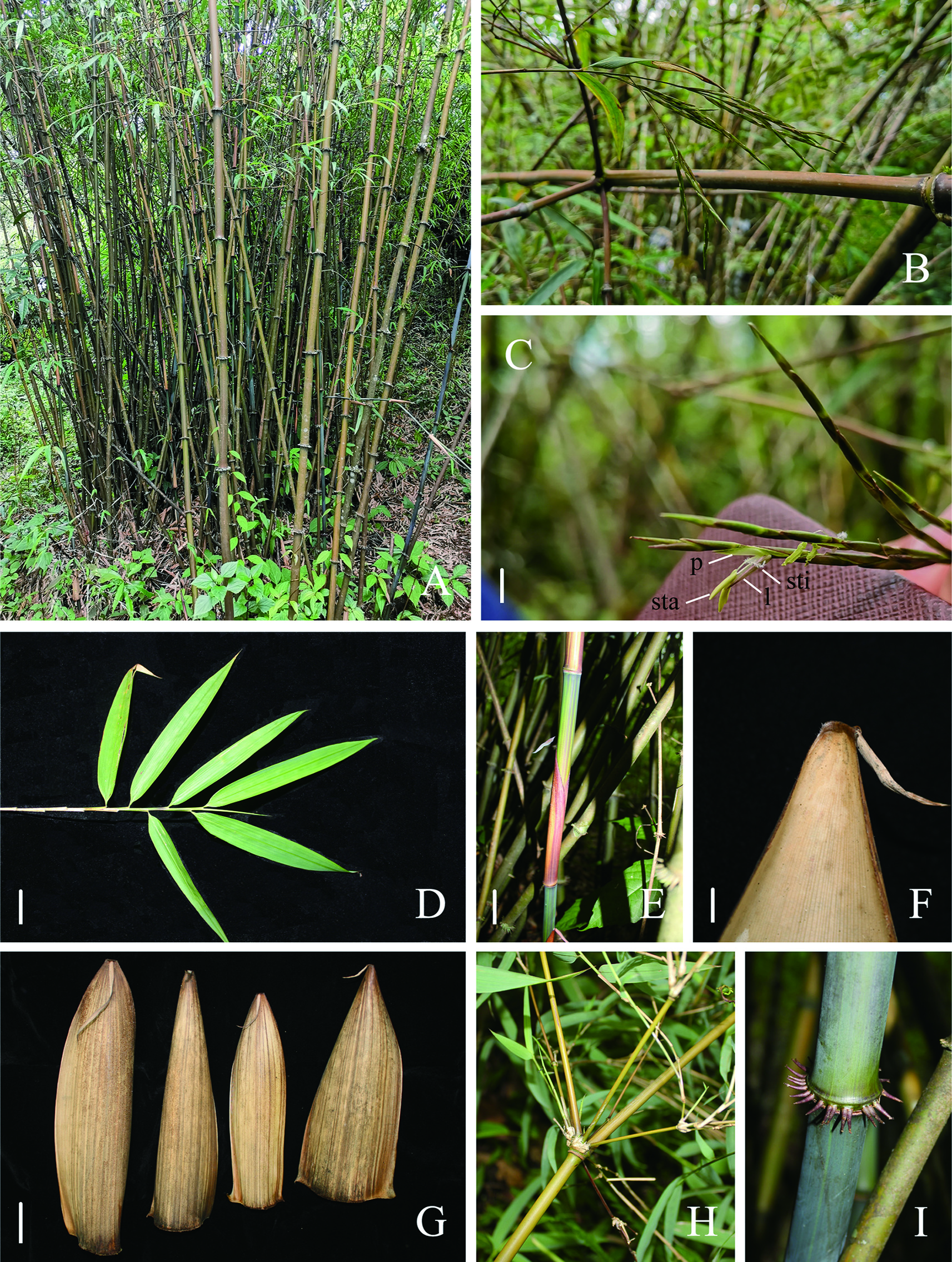 图2河口香竹Chimonocalamus hekouensis Y.X.Zhang,Gui L.Zhang & D.Z.Li。