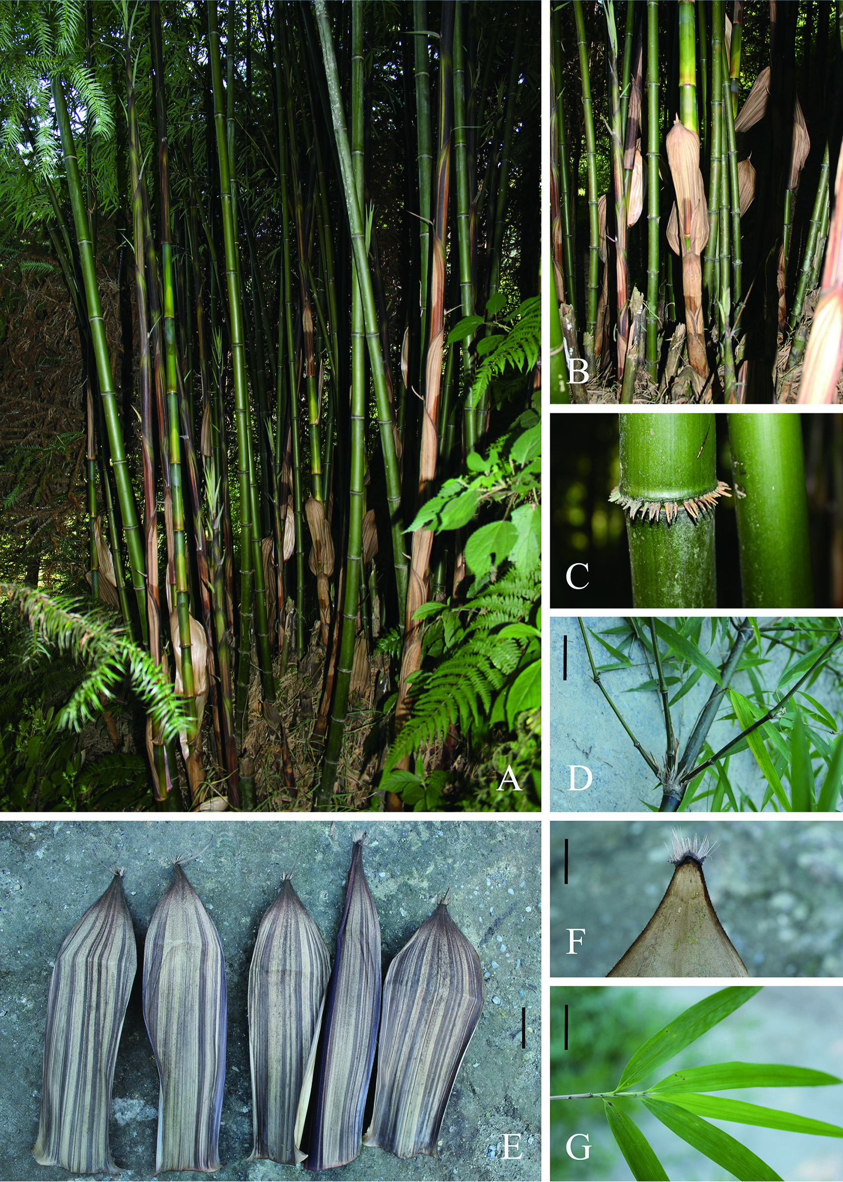 图4双江香竹Chimonocalamus shuangjiangensis D.Z.Li & Y.X.Zhang。