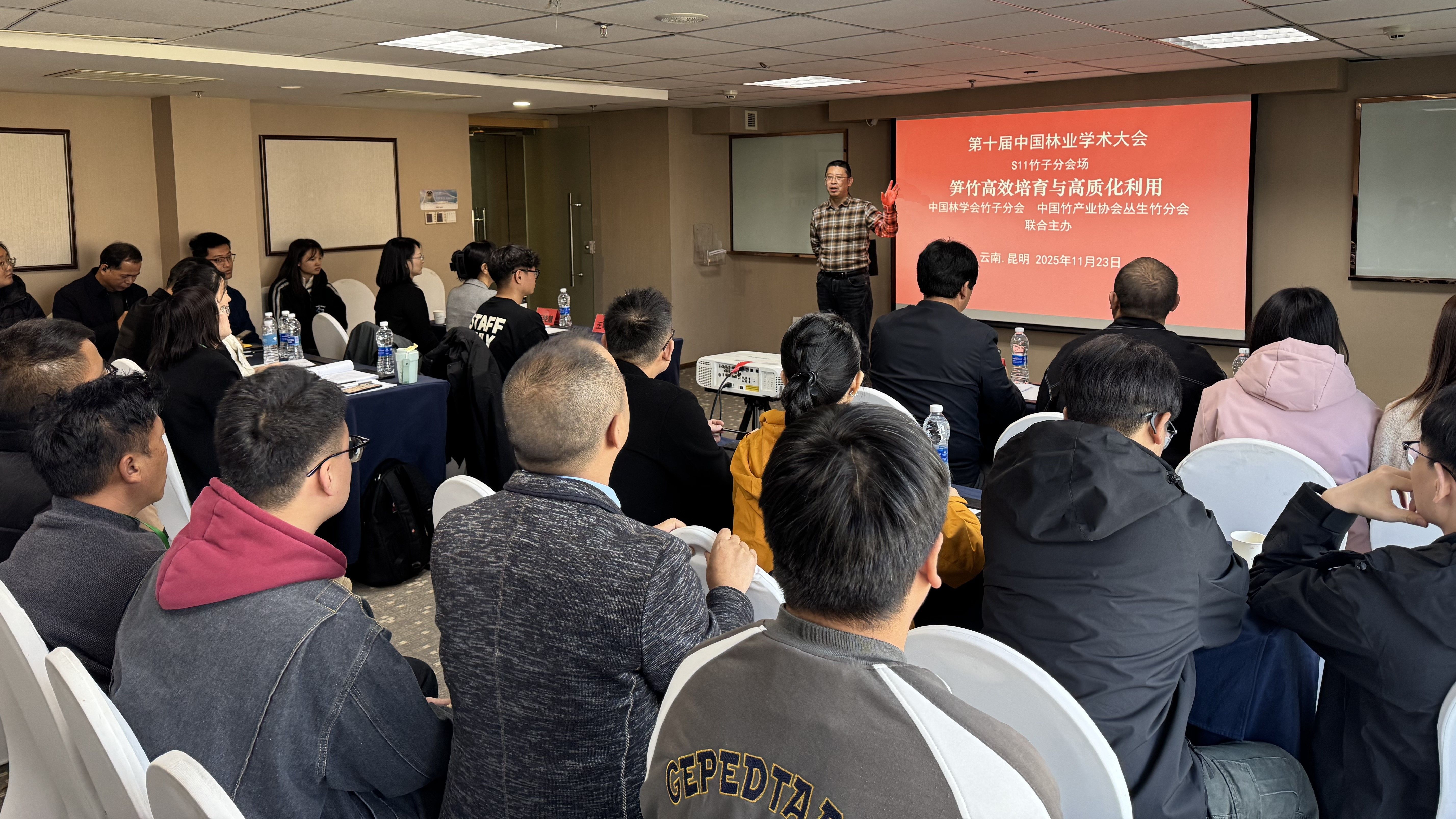 11月23日,由中国林学会竹子分会和中国竹产业协会丛生竹分会联合主办的“笋竹高效培育与高质化利用”研讨会,在昆明花之城豪生国际大酒店隆重召开。该研讨会是中国林学会和西南林业大学主办的“第十届中国林业学术大会”的竹子分会场。
