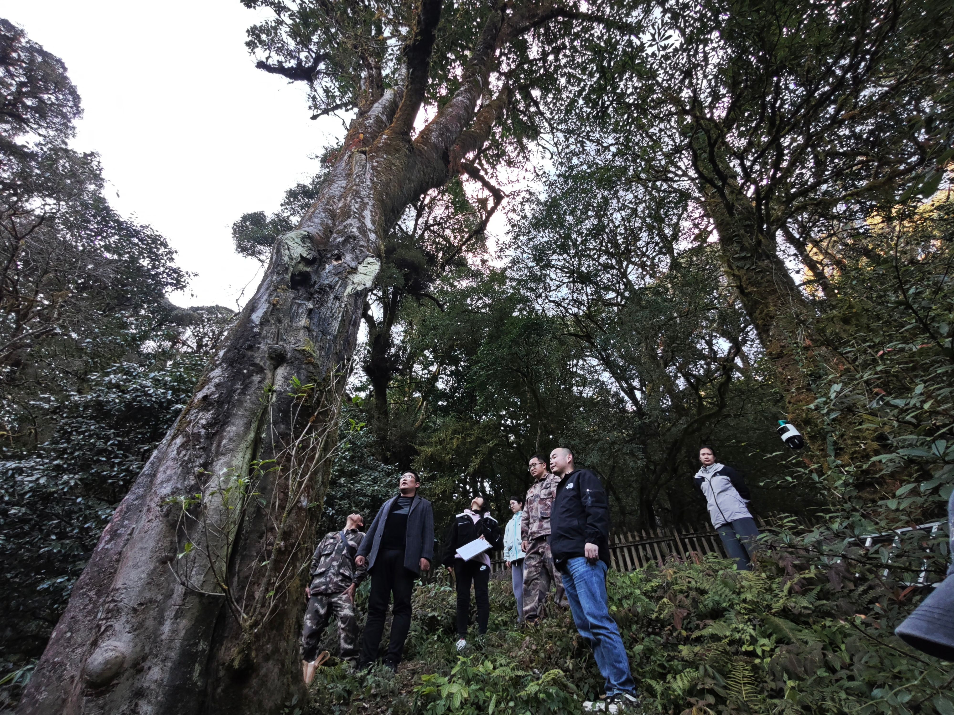 12月30日至31日,西南林业大学古茶树研究团队赴云南哀牢山国家级自然保护区(镇沅片区)千家寨,对1号、2号、3号野生茶树及茶树群落开展科学考察。李法营一行8人前往云南哀牢山国家级自然保护区镇沅管护局工作人员全程陪同并协助开展野外作业。