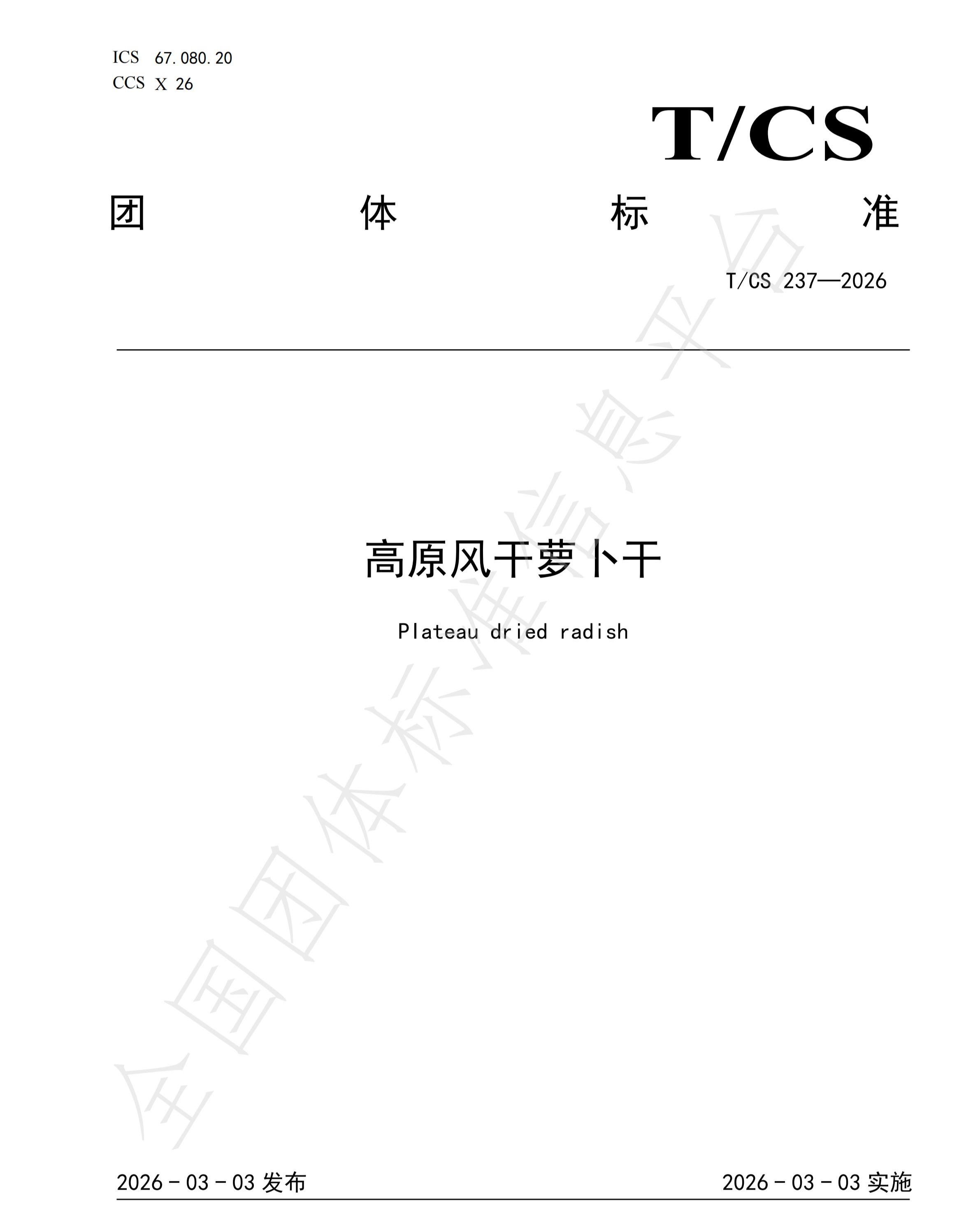 3月3日,中国商品学会发布公告,批准《高原风干萝卜干》(T/CS 237-2026)等八项团体标准正式实施,该标准由撵饭记生物科技(云南)有限公司领衔,西南林业大学生物与食品工程学院联合国内多所高校及行业机构共同起草,填补了高原特色风干萝卜干产品标准的行业空白,也成为酱腌菜领域堪称严苛的专业标准。