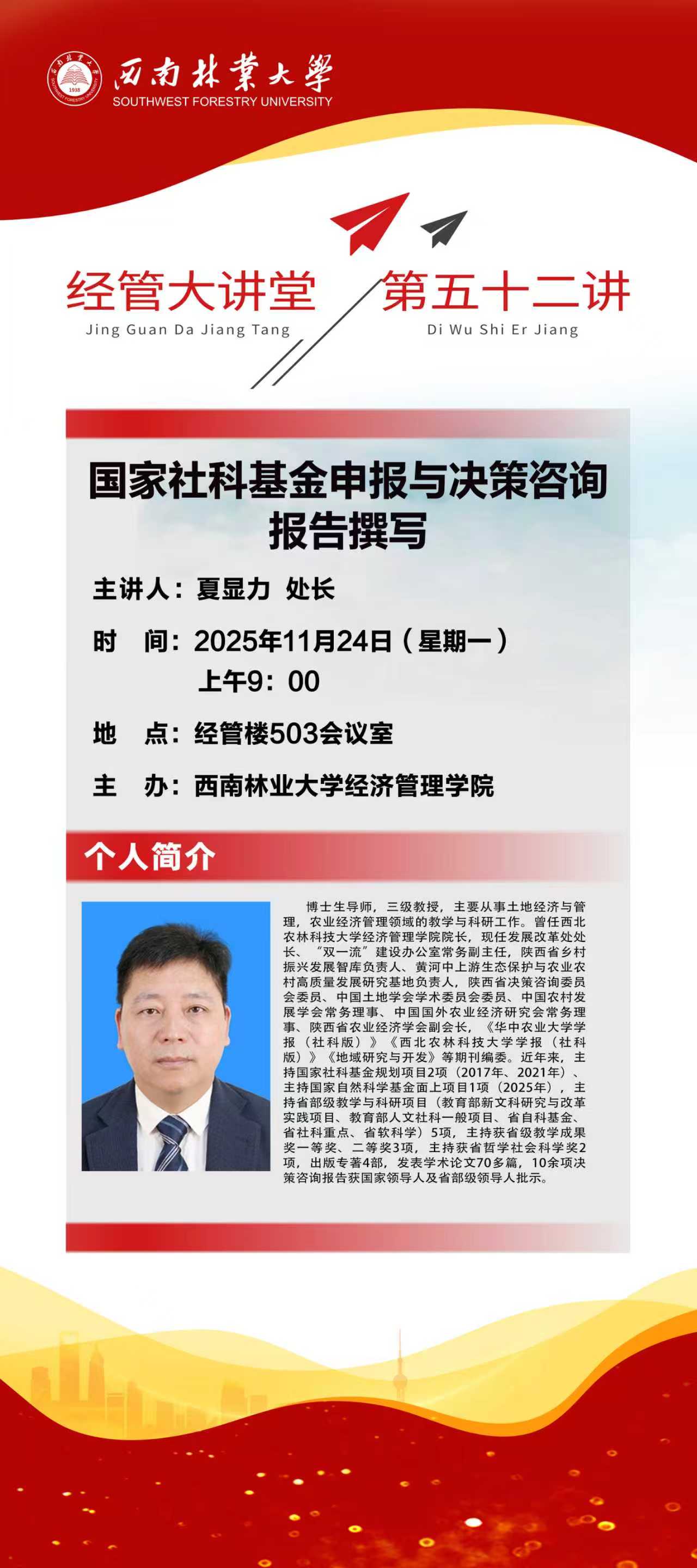 【经管大讲堂】第五十二讲:国家社科基金申报与决策咨询报告撰写