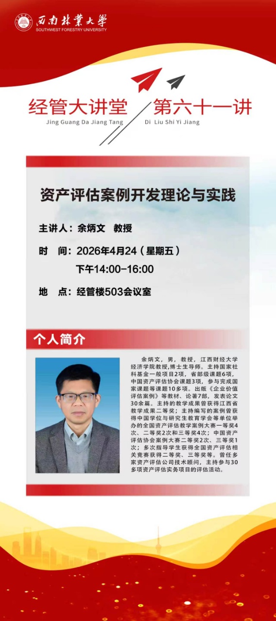 【经管大讲堂】第六十一讲:资产评估案例开发理论与实践