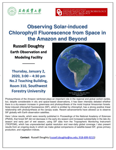 讲 座 主题: Observing Solar-induced Chlorophyll Fluorescence from Space in the Amazon and Beyond