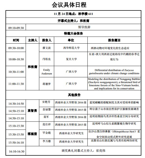 由西南林业大学生物多样性保护与利用学院野生动物教研室、学生第三党支部主办的“西南林业大学第二届野生动物保护论坛”将于2018年11月24日9:00-18:00在林学楼611室召开。本次论坛以“保护、创新”为主题,为加强学术交流,浓郁学术氛围,培养厚基础、高水平、高素质的研究型本科生,促进野生动物保护的学习和发展,为大学生搭建了多层次的学习与交流的平台,丰富学生的校园文化生活,浓厚了我院的学术氛围,激发西林学子的学术热情,全面提升创新能力。