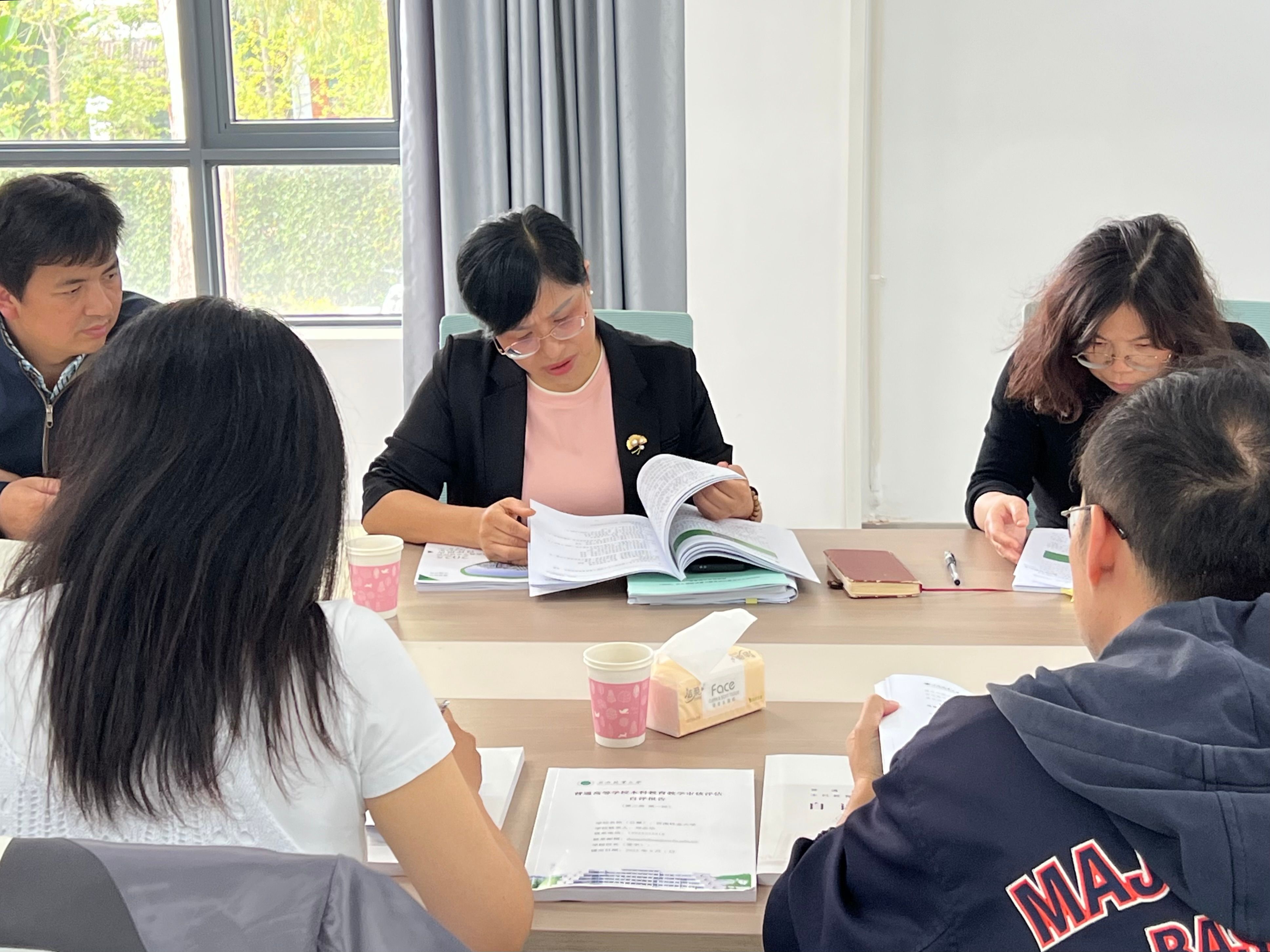 学校成立审核评估工作领导小组,下设材料指导组、听课看课与访谈组、文稿组、会务接待组、专家联络组等8个专项工作组,印发《审核评估工作方案》,明确各组职责与工作流程。例如,材料指令组负责收集整理各学院、职能部门专项材料,确保评估材料“真实、完整、规范”;专家联络组提前对接评估专家需求,制定个性化接待方案,形成“横向到边、纵向到底”的责任体系。