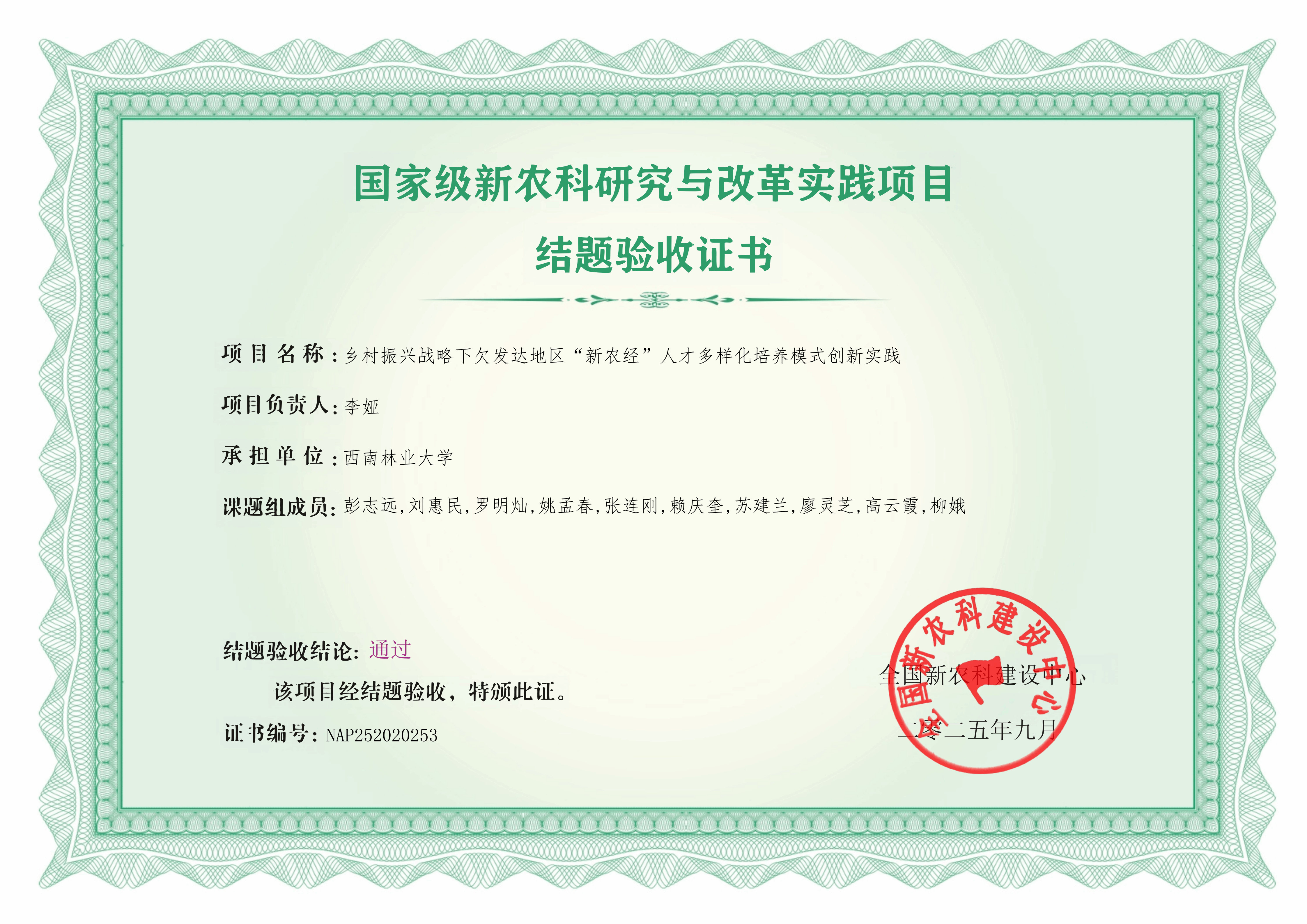 近日,教育部办公厅发布《关于公布新农科研究与改革实践项目结题验收结果的通知》(教高厅函〔2025〕12号)。由经济管理学院李娅教授主持的“乡村振兴战略下欠发达地区‘新农经’人才多样化培养模式创新实践”项目通过结题验收。