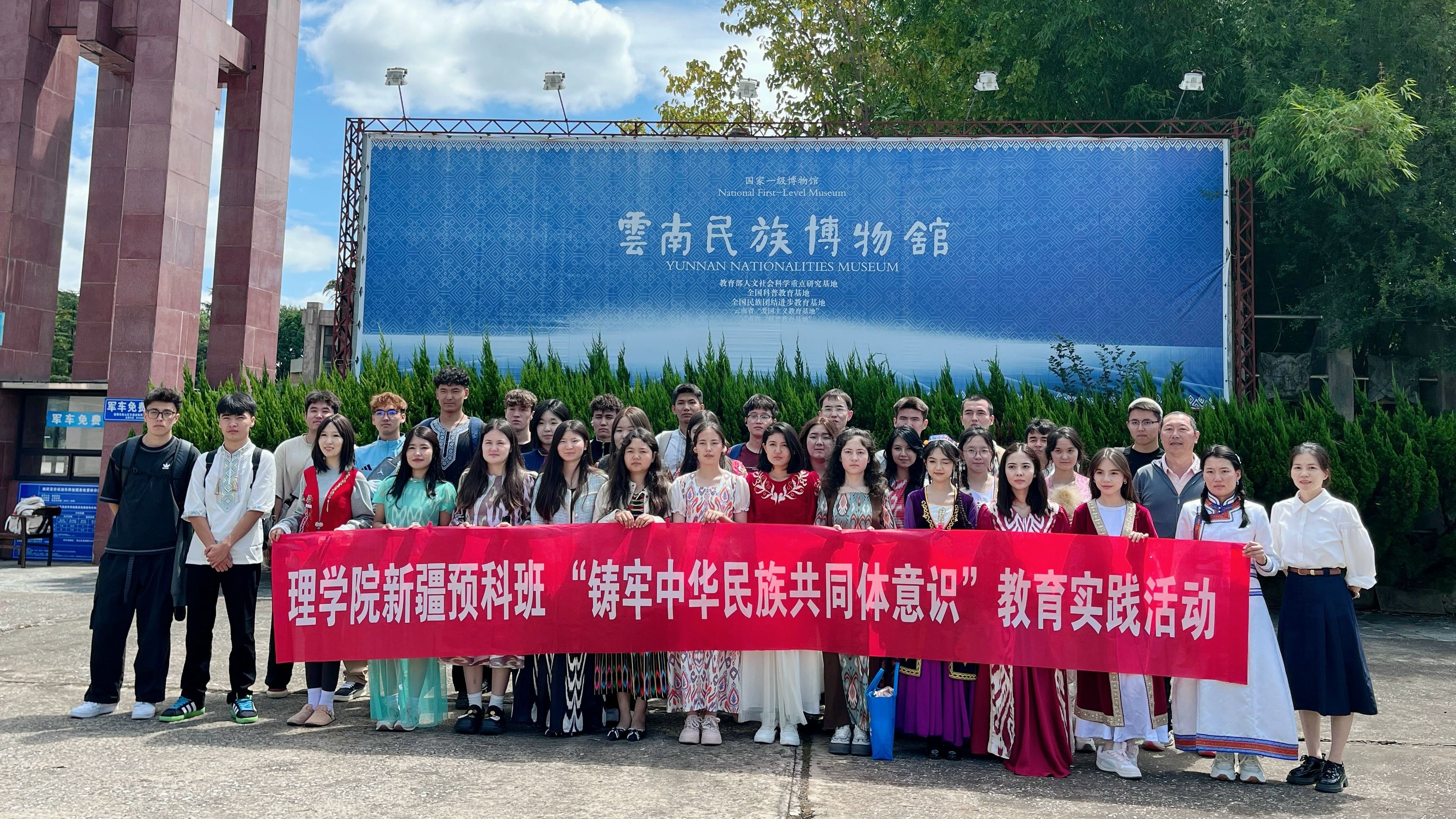 近日,我校组织新疆预科班赴云南民族村、云南民族博物馆开展以“石榴花开 同心筑梦”为主题的铸牢中华民族共同体意识教育实践活动。理学院党委副书记魏轶、辅导员蒙秋月、专职辅导员努尔古丽,带领2025级预科班32名同学参加活动。