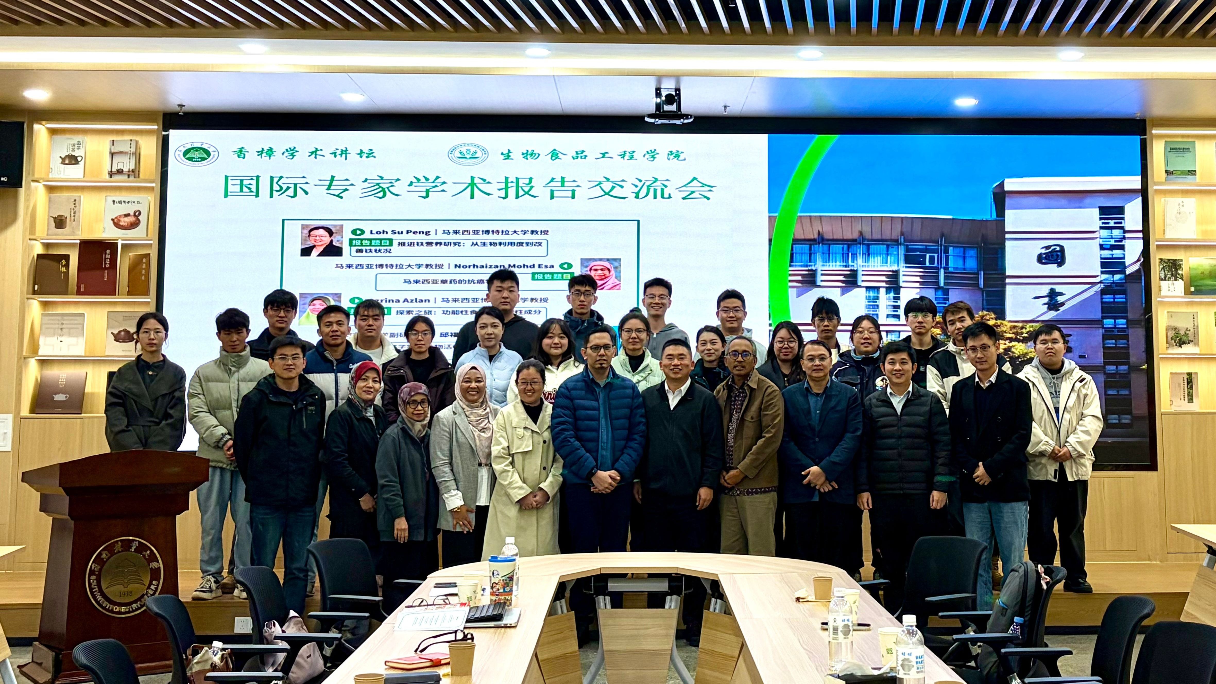 该专家工作站于2025年获云南省科学技术厅批准成立,成为学院首个落地的国际专家工作站。揭牌仪式后,Amin Bin Ismail团队成员进行国际专家学术报告交流会,并参观了西南林业大学食用菌现代产业学院及生物与食品工程学院现代教学、科研实验室;Amin Bin Ismail表示希望通过此次专家工作站的建立,促进西南林业大学与国际知名高校之间的交流合作,共享科研资源,共同推进云南食品产业的高质量发展。