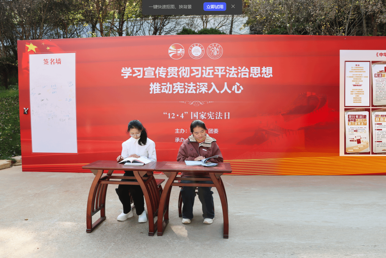 启动仪式上,师生代表面向国旗庄严宣誓,以铿锵誓言表达恪守宪法原则、履行宪法使命的坚定决心。随后的情景剧表演与普法宣传展,用鲜活的艺术形式和图文展板,将抽象的宪法知识转化为可感可知的法治养分,为宣传周拉开生动序幕。