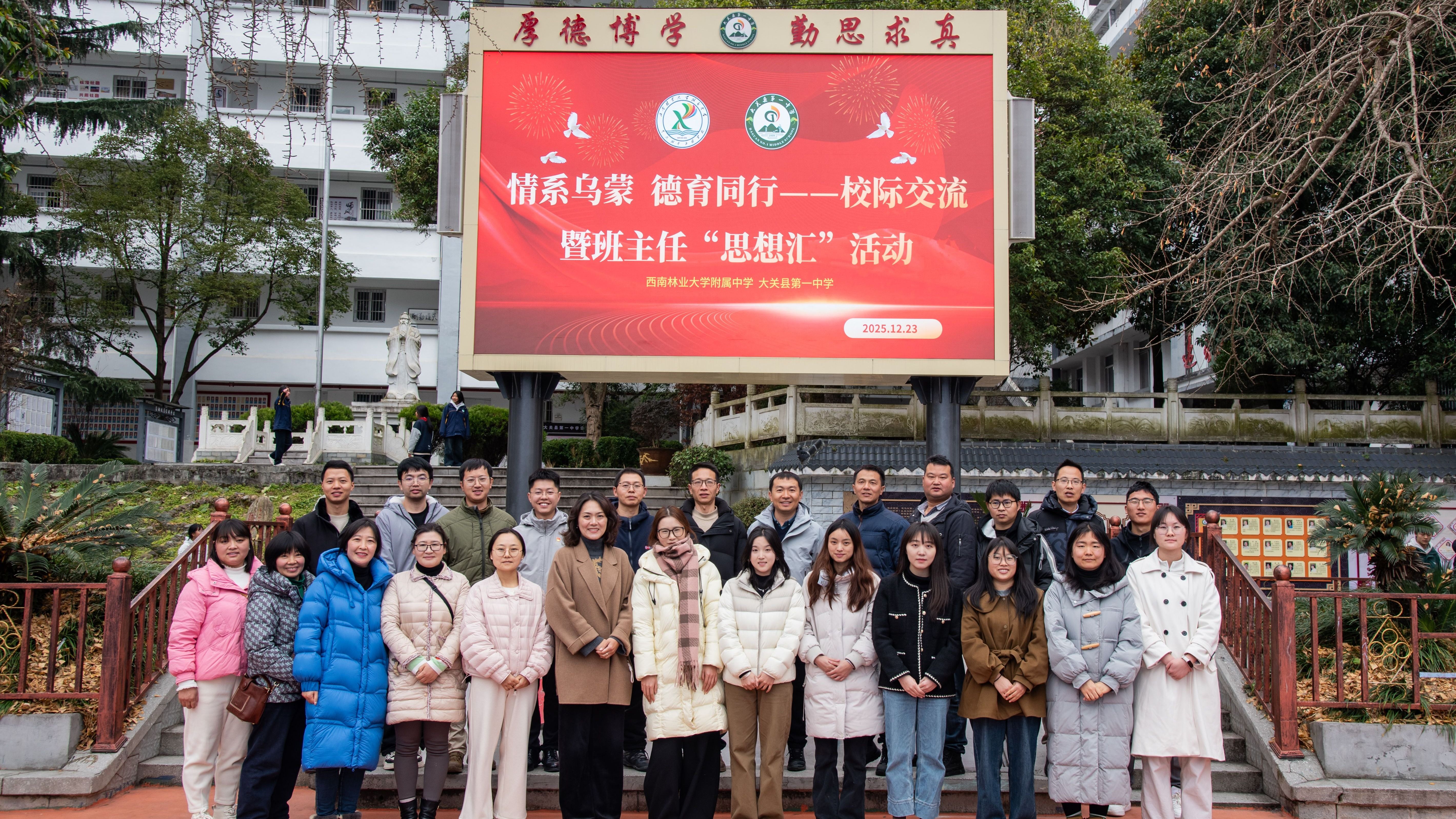 为促进教育均衡发展,推动优质资源共享。12月22至23日,西南林业大学附属中学(云大附中西林学校,以下简称“西林附中”)与昭通大关县第一中学(以下简称“大关一中”)联合举办“情系乌蒙 德育同行”校际交流暨班主任“思享汇”活动。活动聚焦德育工作与班主任成长,旨在通过经验分享与思想碰撞,深化两校情谊,共探育人新路。
