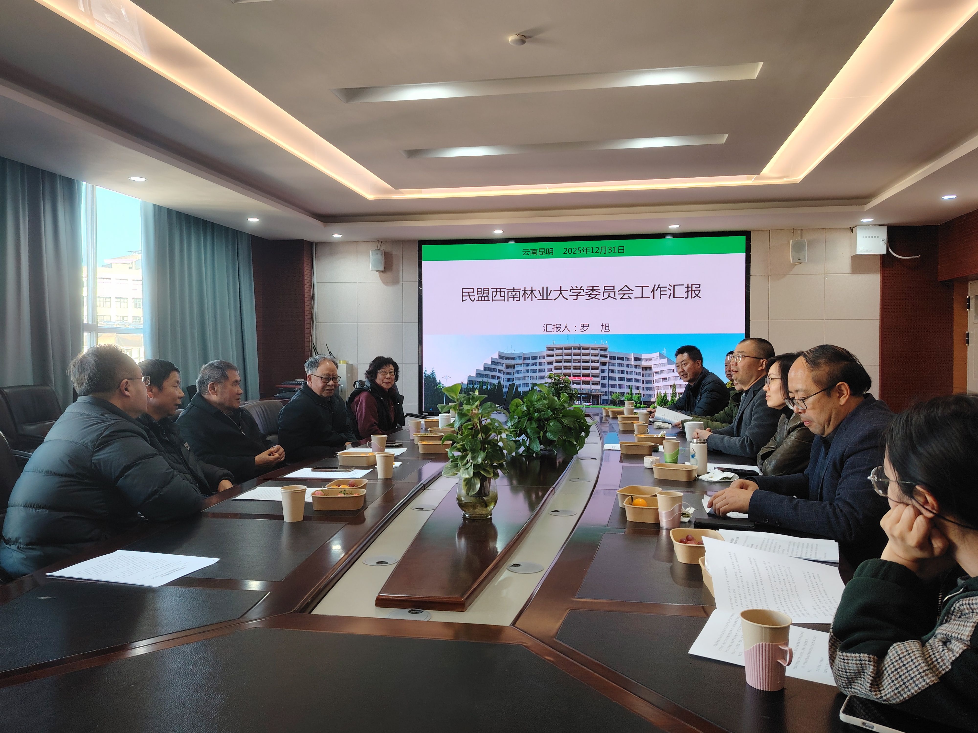 2025年12月31日,民盟西南林业大学委员会召开2025年度会议,特邀往届主任委员李乡旺、杨比伦、徐正会及新盟员代表参加会议,现任主任委员罗旭作工作汇报。校统战部部长王泾到会指导。