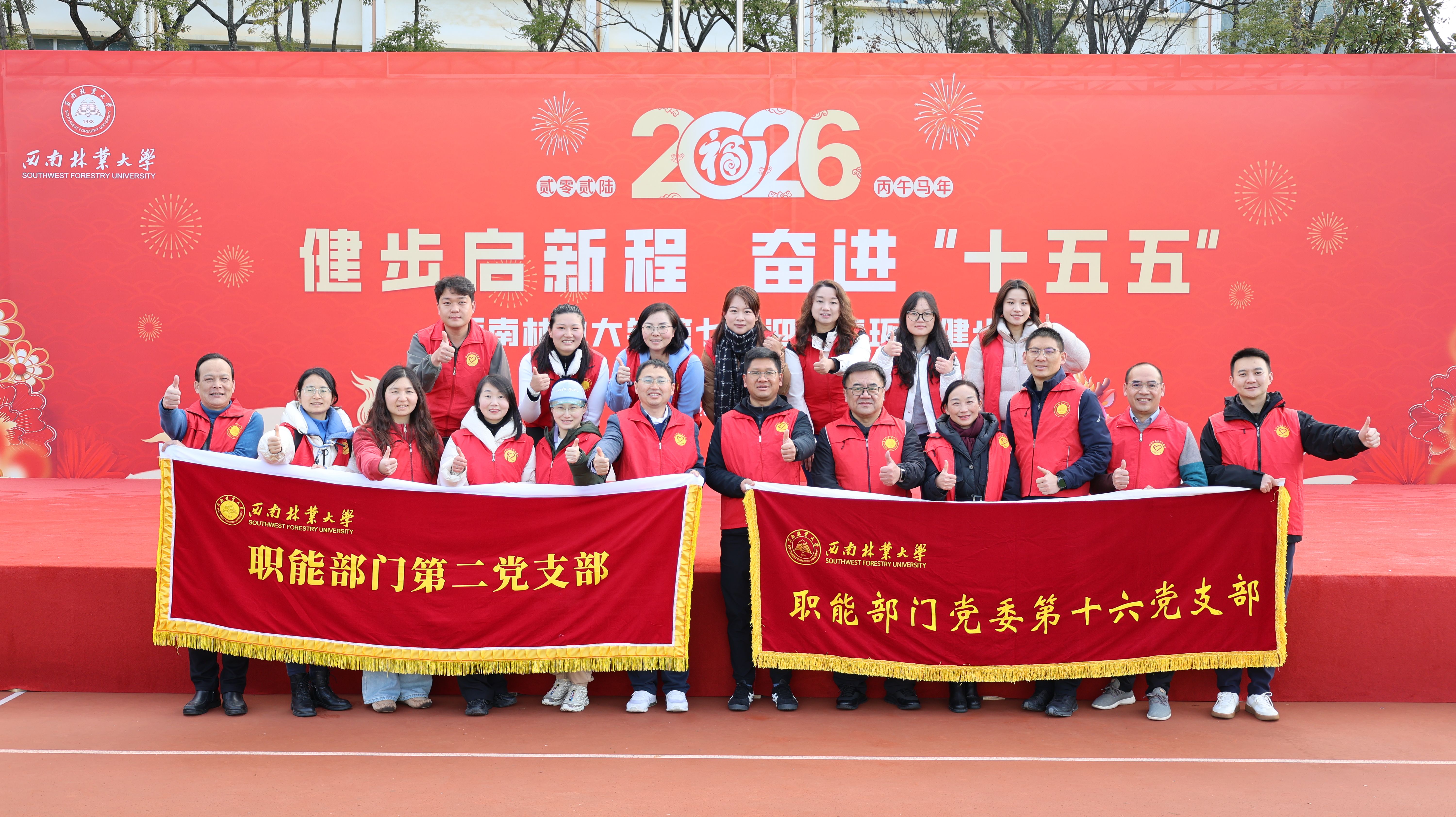1月9日,西南林业大学第七届“健步启新程,奋进‘十五五’”迎新春环校健步走活动顺利举办。为响应学校工会(妇联)号召,充分发挥党员先锋模范作用,职能部门第二党支部联合第十六党支部组建党员志愿服务队,全程为活动提供全方位保障,以实际行动践行志愿服务精神。