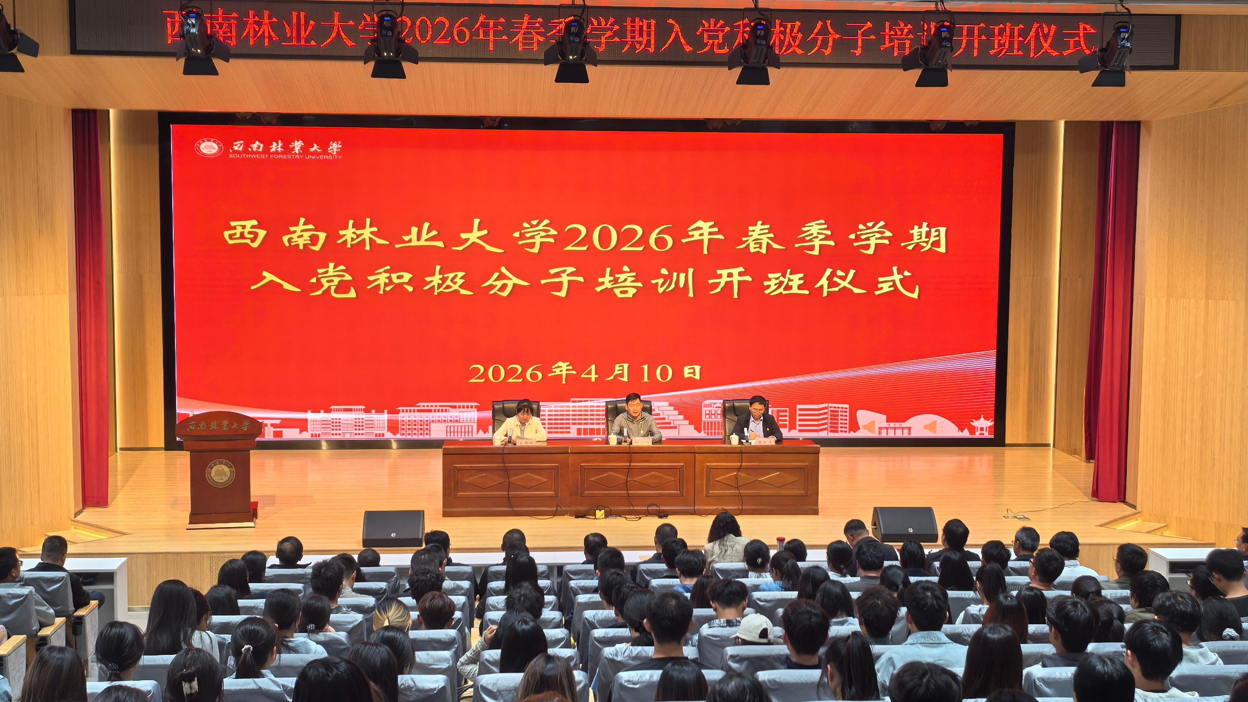 为严格落实党员教育培训工作要求,夯实党的后备力量根基,深入推进树立和践行正确政绩观学习教育,4月10日下午,我校2026年春季学期入党积极分子培训正式开班,学校党校负责人、党校授课教师代表、各院级党组织书记及组织员,以及参加本期培训的入党积极分子代表共计400余人参会。