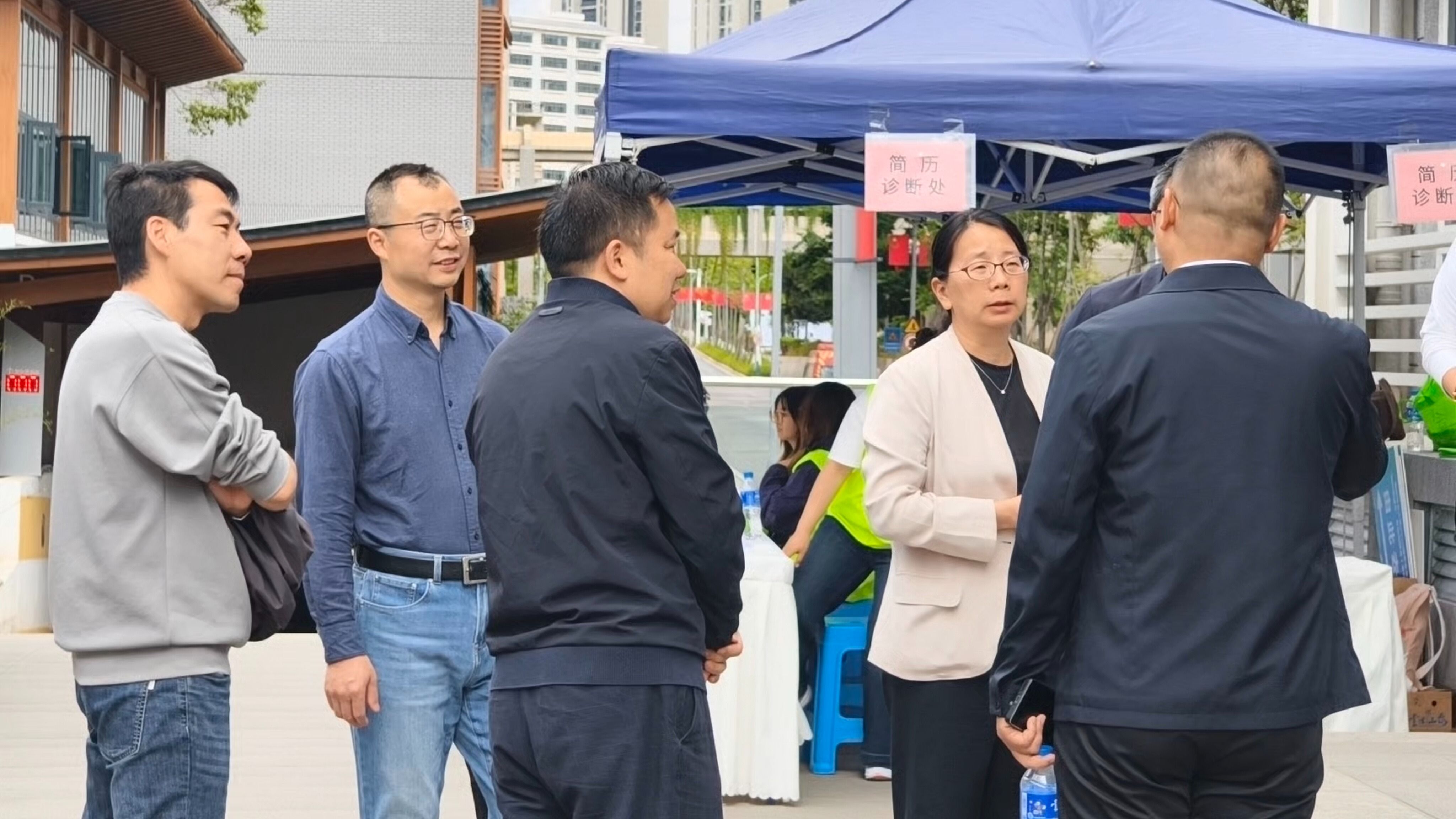 活动现场,何霞红一行逐一走访企业展位,与各用人单位负责人深入沟通,详细了解企业招聘需求、岗位设置及人才培养要求。同时,她与在场求职学生亲切交谈,询问求职准备情况,鼓励大家积极应聘、主动对接,充分展现自身专业素养与综合能力。