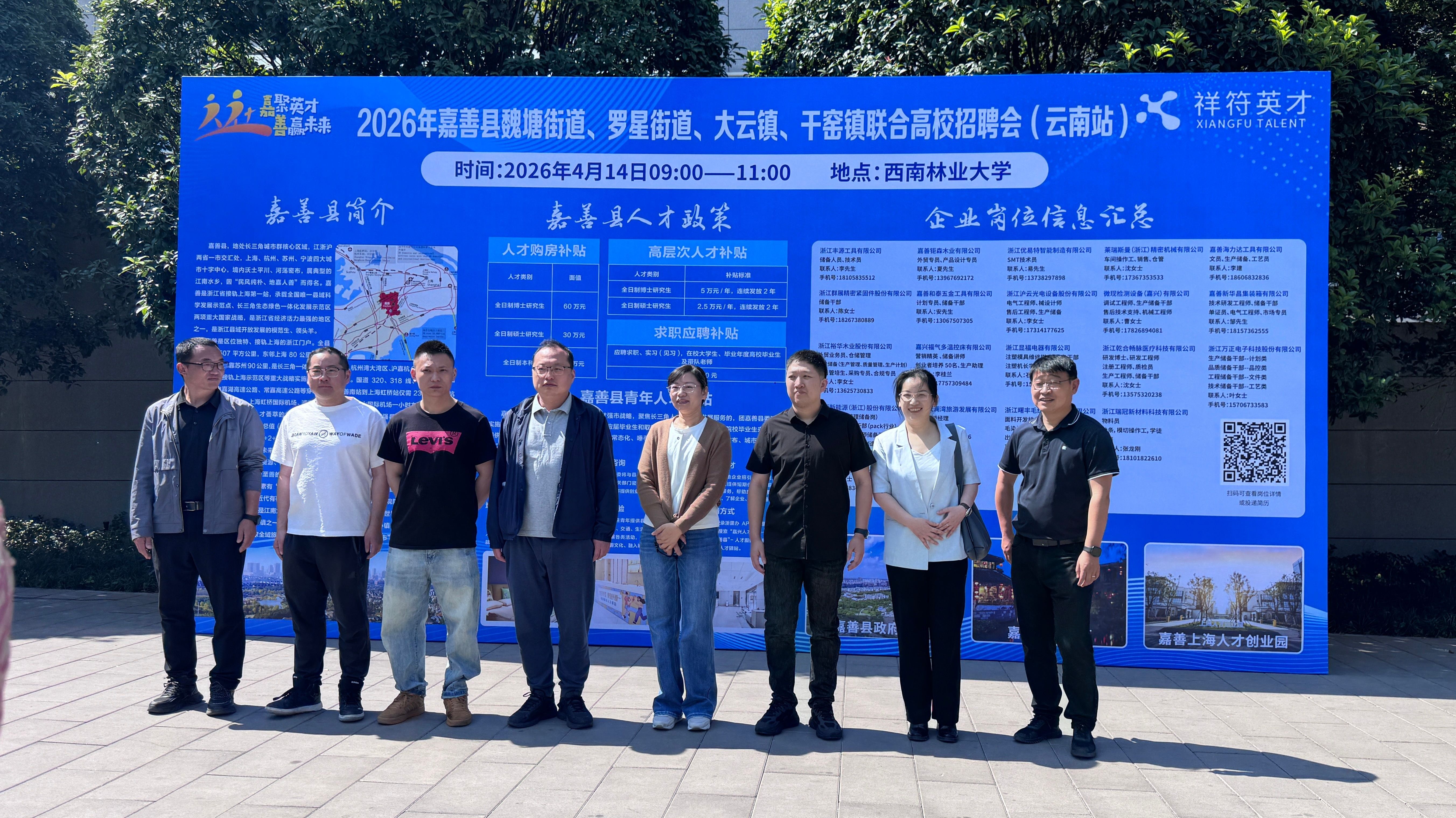 4月14日,2026年嘉善县“嘉聚英才・善赢未来”高校招聘会(云南站)在我校经管楼一楼大厅举行。本次招聘会由嘉善县相关街道、乡镇联合组织,为我校毕业生与地方优质企业搭建了精准就业对接平台。