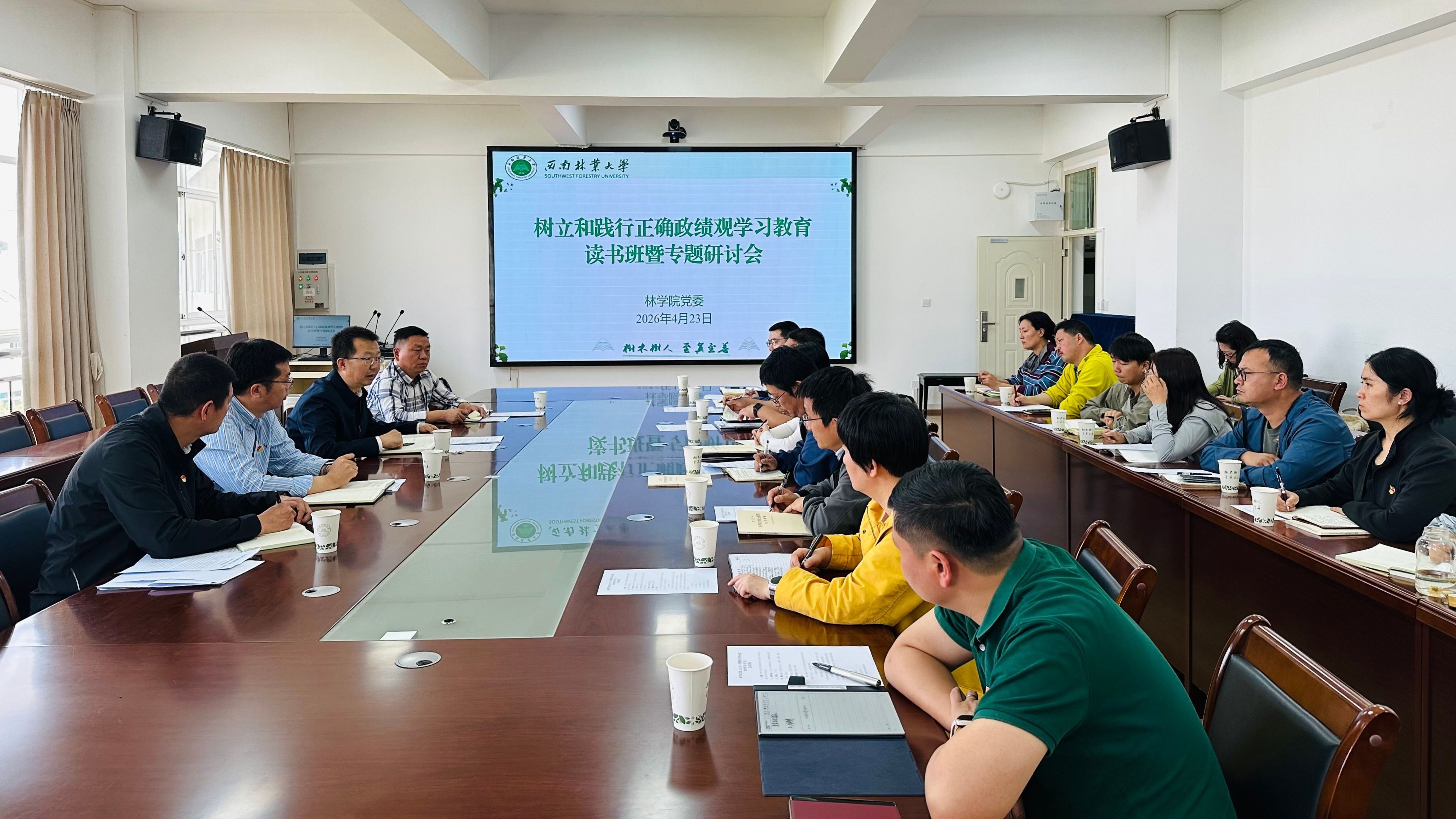 4月23日上午,林学院党委在林学楼513会议室召开2026年4月理论学习中心组集中学习(扩大)会议,同步开展“树立和践行正确政绩观学习教育”第二次读书班集中学习与专题研讨。学院党委书记苏小冰主持会议,学院党委理论学习中心组成员、各党支部书记参会,校长李君、水土保持学院党委书记刘建祥列席旁听。