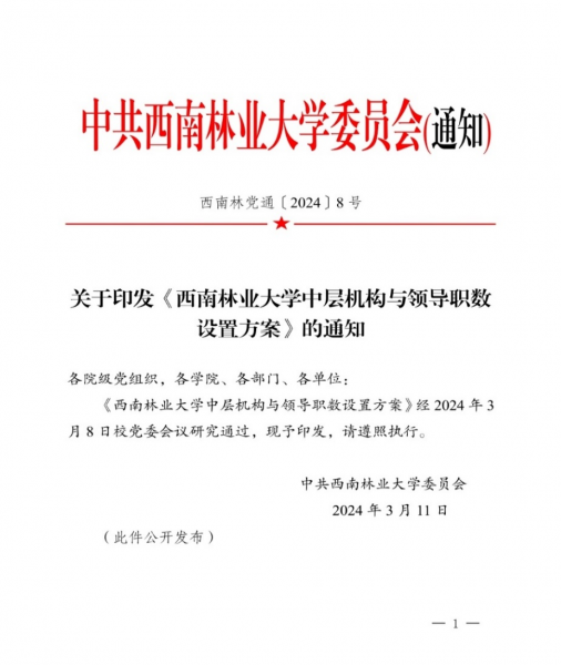 为进一步突出办学特色,发挥我校在西南地区的区位优势,精准服务于生态环境保护、美丽中国建设和区域生态安全等国家战略,同时立足云南,服务地方发展战略需求,西南林业大学依托优化现有人才培养条件,2024年3月11日正式发文,成立了水土保持学院。