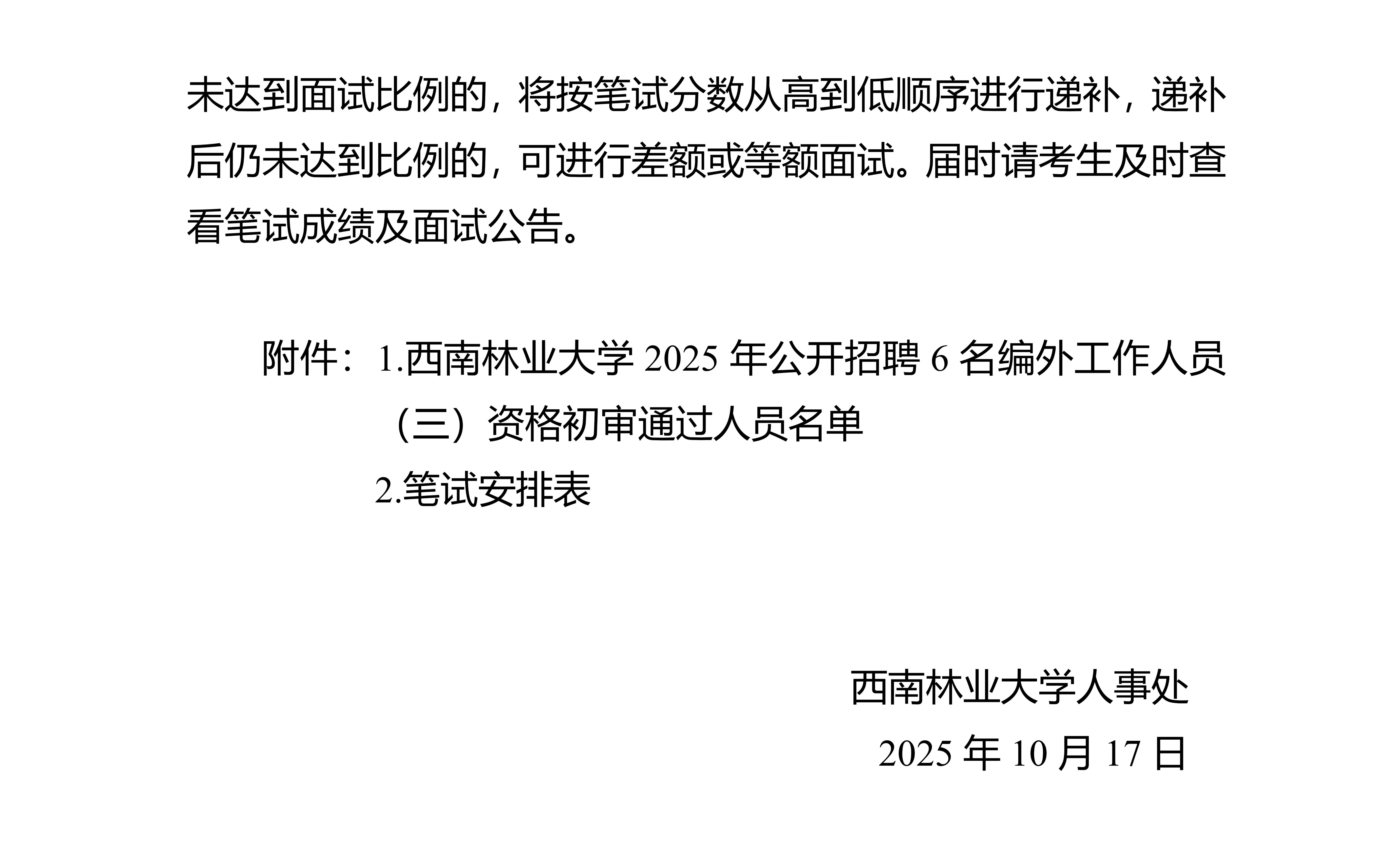 下一条:西南林业大学2025年10月16日博士公开招聘面试成绩及进入考察人员公示