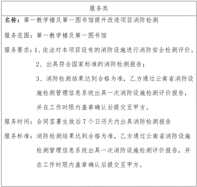 二、项目名称:西南林业大学第一教学楼及第一图书馆提升改造项目聘请消防检测单位