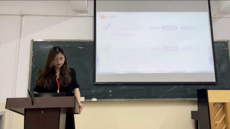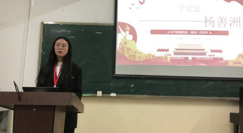 黄韵菲为大家带来“回顾百年辉煌党史”的主题团课,她指出今天的祖国繁荣而稳定,成为了世界上举足轻重的大国,我们作为华夏儿女感到无比的骄傲与自豪。思想是行动的先导,拥有正确的思想,才会有正确的行动。我们要继承并发扬中国共产党员的优秀品质,坚决同歪风邪气作斗争,时刻用党员的标准严格要求自己,发挥先锋和模范作用,响应新时代的号召,与时俱进,为祖国贡献自己的智慧和力量。