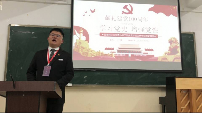 为推动“学党史、强信念、跟党走”学习教育持续深化,引导广大青年厚植爱党、爱国、爱社会的情感,让红色基因、革命薪火代代相传,我院校青马班5名学员按照校团委的部署要求,深入学院各所在支部开展党史教育主题团课。